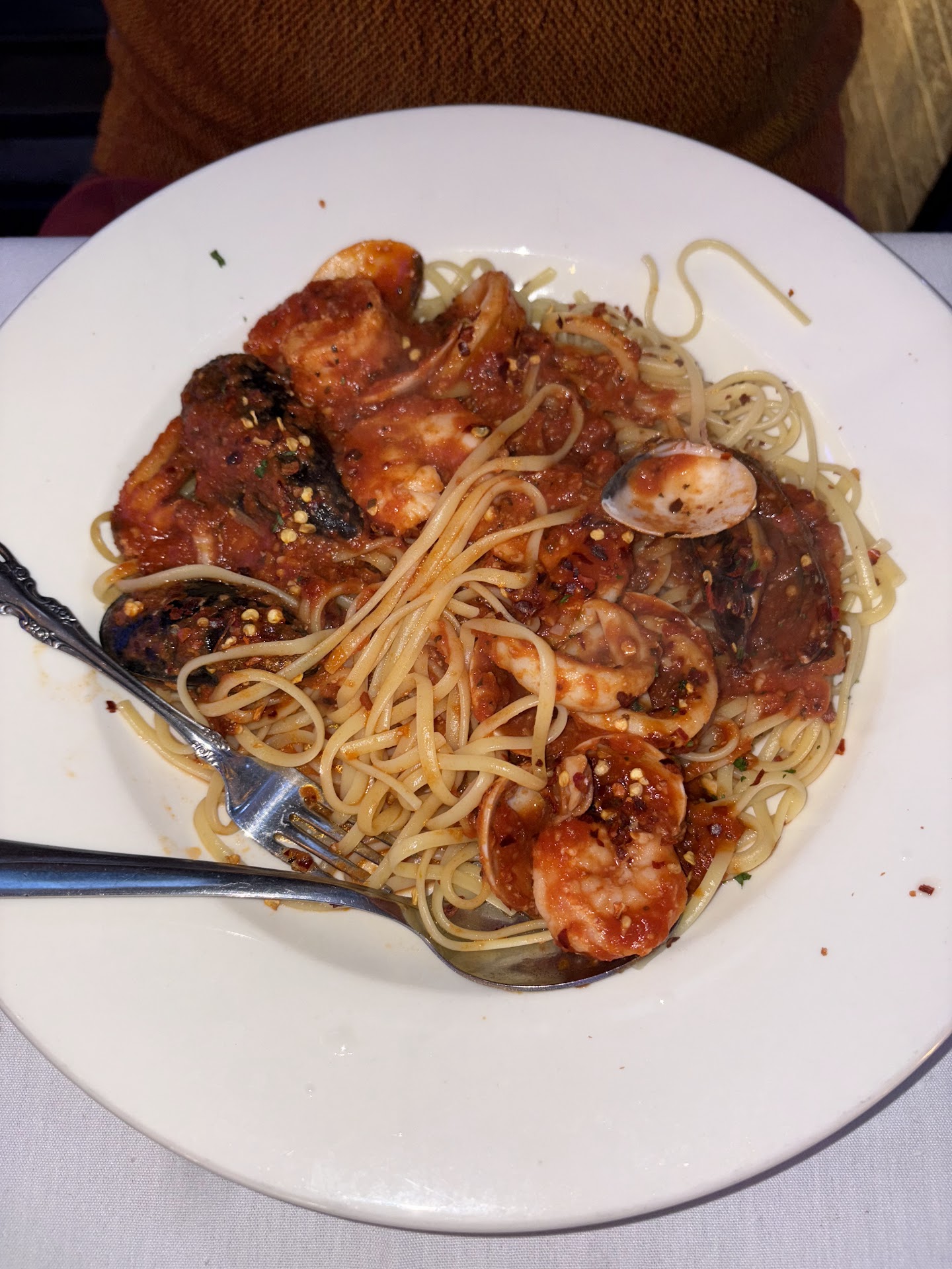 We celebrated my partners birthday today & wanted to find a new place weāve never been to. We came here & weāre not disappointed! This is definitely a hidden gem! Tristian was our server. He was wonderful! I got water, my partner got Peroni, there was bread and sauce as appetizers. I ordered Linguini Alfredo & my partner ordered frutti di mare fra diavolo , with that being said, my partner also requested if it was possible to make it hot & spicy. So sorry I didnāt catch the owners name, but he cooked the meal and my partner was amazed!!!!! It was absolutely fabulous!!! We both enjoyed our meals and somehow managed to finish them, when I never can.