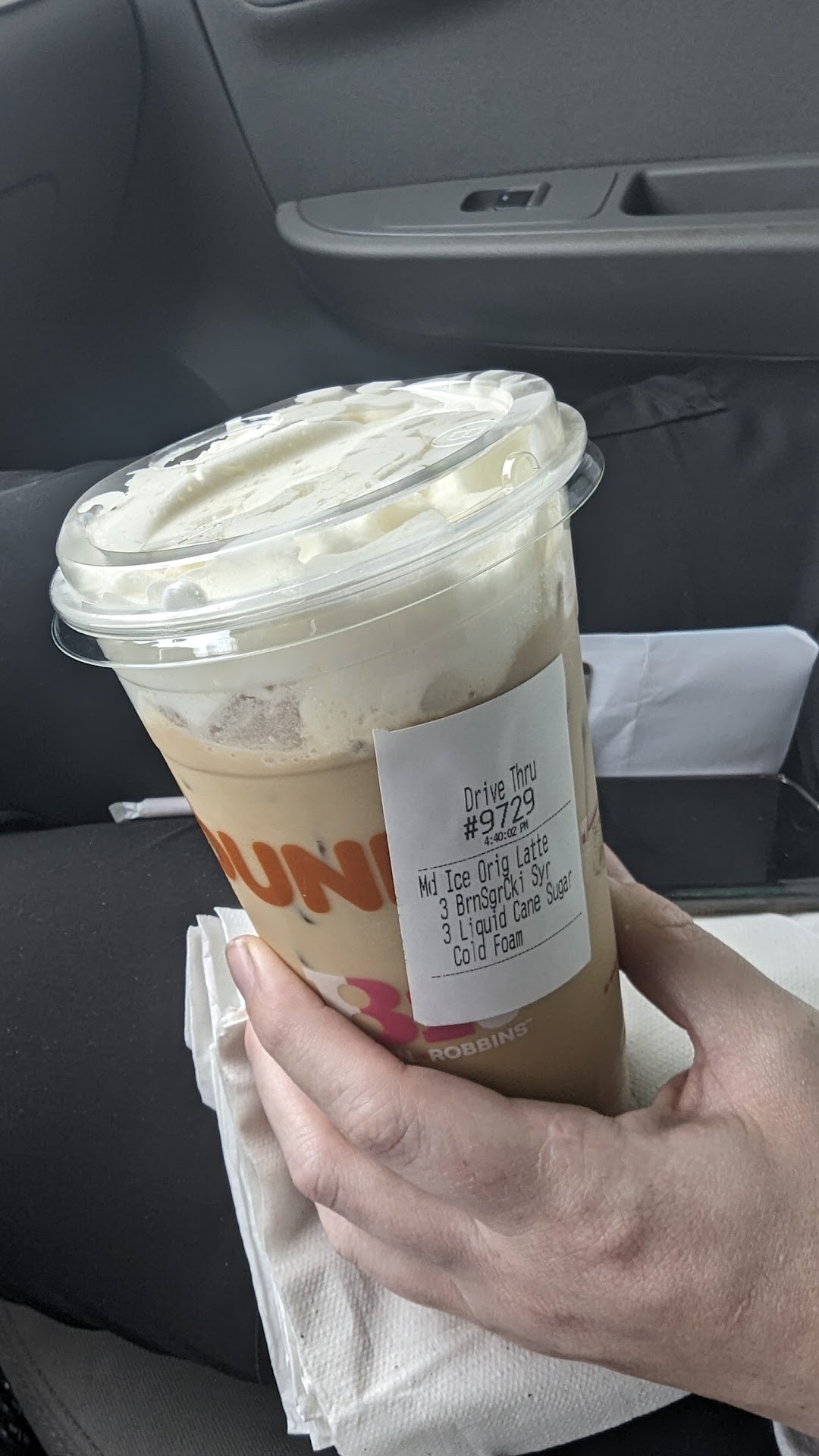 Please like & share our reviews. Drive thru is super quick. In house, if you do a walk-in order, they consisssssssstently forget to add items and will have ya waiting. Speak up if that happens. Sometimes there is a disconnect between to person who pulls the paper receipt and makes your coffee and the person at the counter to handles the pastries, donuts and food items. They really need to get a handle on this aspect of ordering. It gets frustrating for everyone. If you are not in a rush, this is a nice leisurely location. Otherwise, go to the shop on 100/Moody. They are amazingly fast and less slip ups. One woman waited for 2 donuts for 15 minutes. When we finally got an employee, she pulled the donuts but the woman told her that she ordered a different donut. Employee angrily throws the entire donut in the trash and asks again what she wanted. We were both caught by surprised at her behavior. We were the kind and patient ones yet we did nothing to deserve that kind of response. The elderly lady took her order then I asked for mine. There was a line forming of missed food items. Folks were getting drinks but not the food from their tickets. The biggest disgust though are the weird floral arrangements that are collecting dust and are hanging above the food below... the donut cases do not have a door. Pretty sure that shouldn't be hanging above food items. The plus side..his location happens to have some of the most adorable Dunkin tumblers, reusable metal straws, elf on the shelf ornaments and more. Place is clean, has all kind of seating and areas for talk, studying and hanging out. The only thing we do not care for are the flowery decor that catches dust placed right above the open food area. They have flower decor hanging on both sides of the menu above the donuts. It just makes us not want to order donuts. The seating outdoors is really nice and shaded as well. We love how spacious it is indoors and outdoors for guests. This is a combo establishment so get your donuts, coffee and your ice cream fix here as well. They have the most adorable seasonal ice cream cakes by Baskins and a million style candles to adorn your cake. We are completely done at this location after 4 orders in a row were incomplete. We just don't have the time or patience for the mishaps and...
