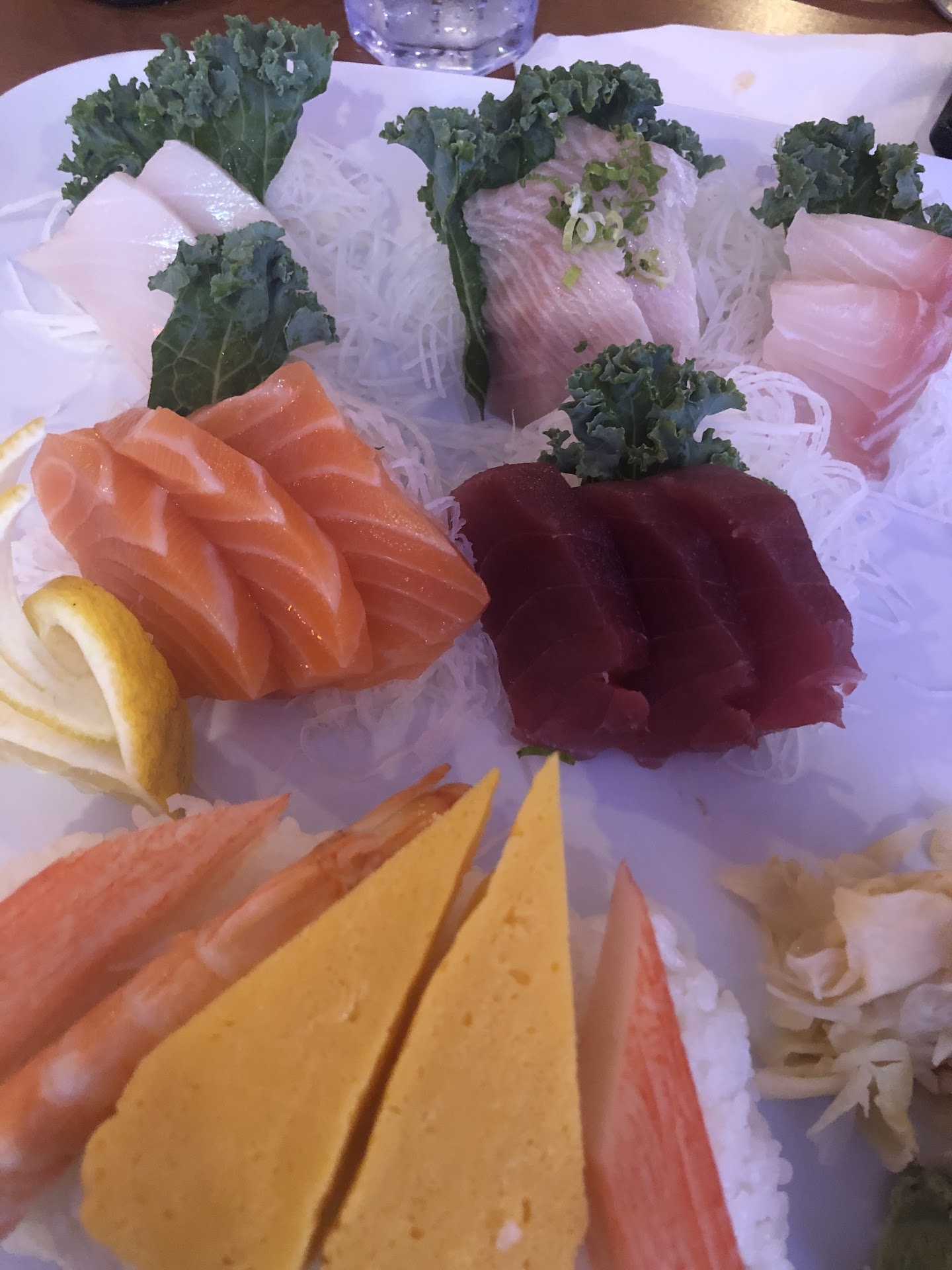 Everything we ordered was good and I would recommend them. We got the chirashi (various sashimi served over rice), a lobster roll, a rainbow roll and a scallop stir-fry. Also, a Sapporo beer and a shirley temple.