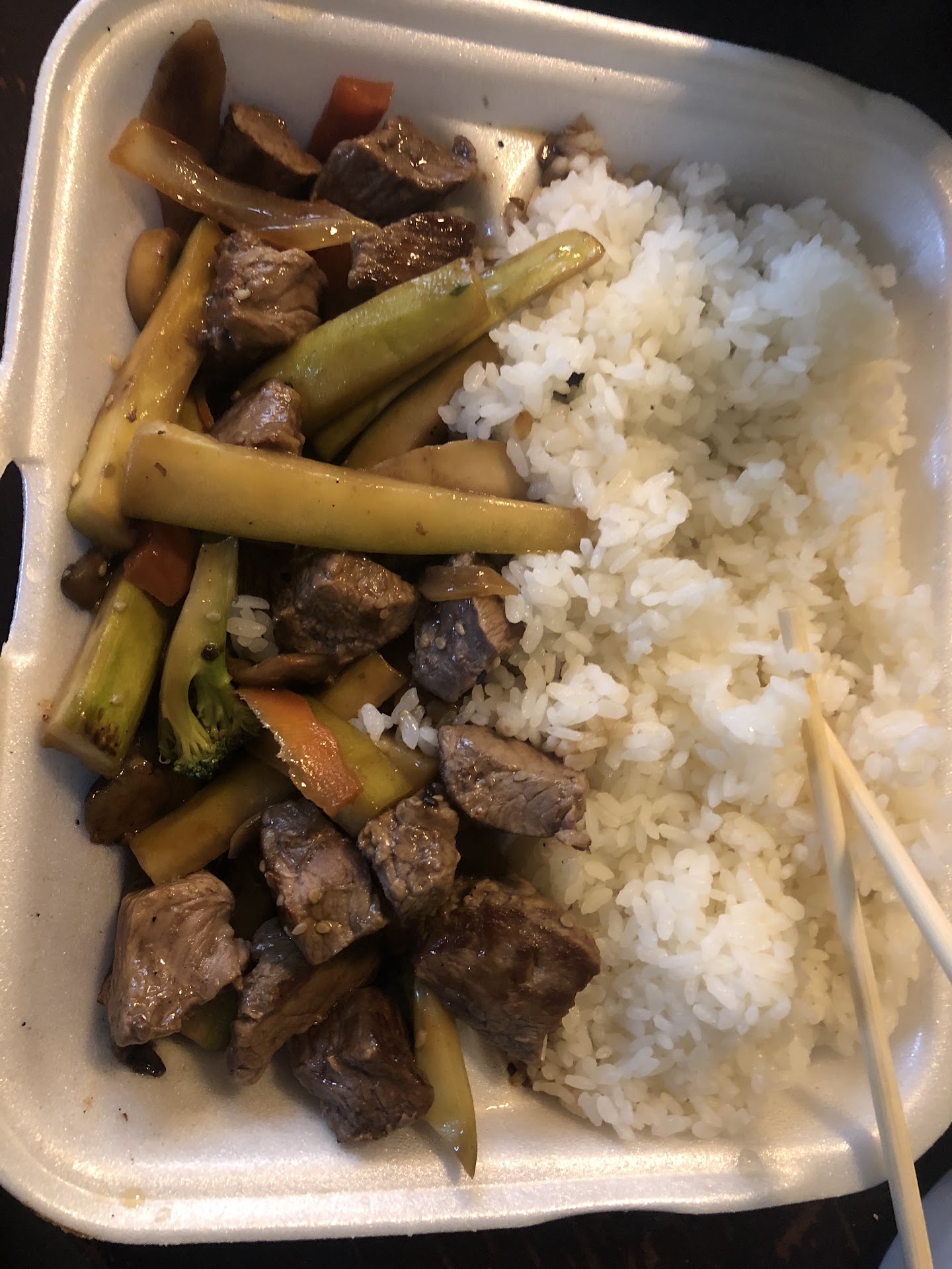 Chicken hibachi was very salty and chicken was hard on the edges (overcooked). Vegetables and rice were good. The brown sauce on the hibachi was almost gel-like. Way too thick and tastes salty and cheap.
