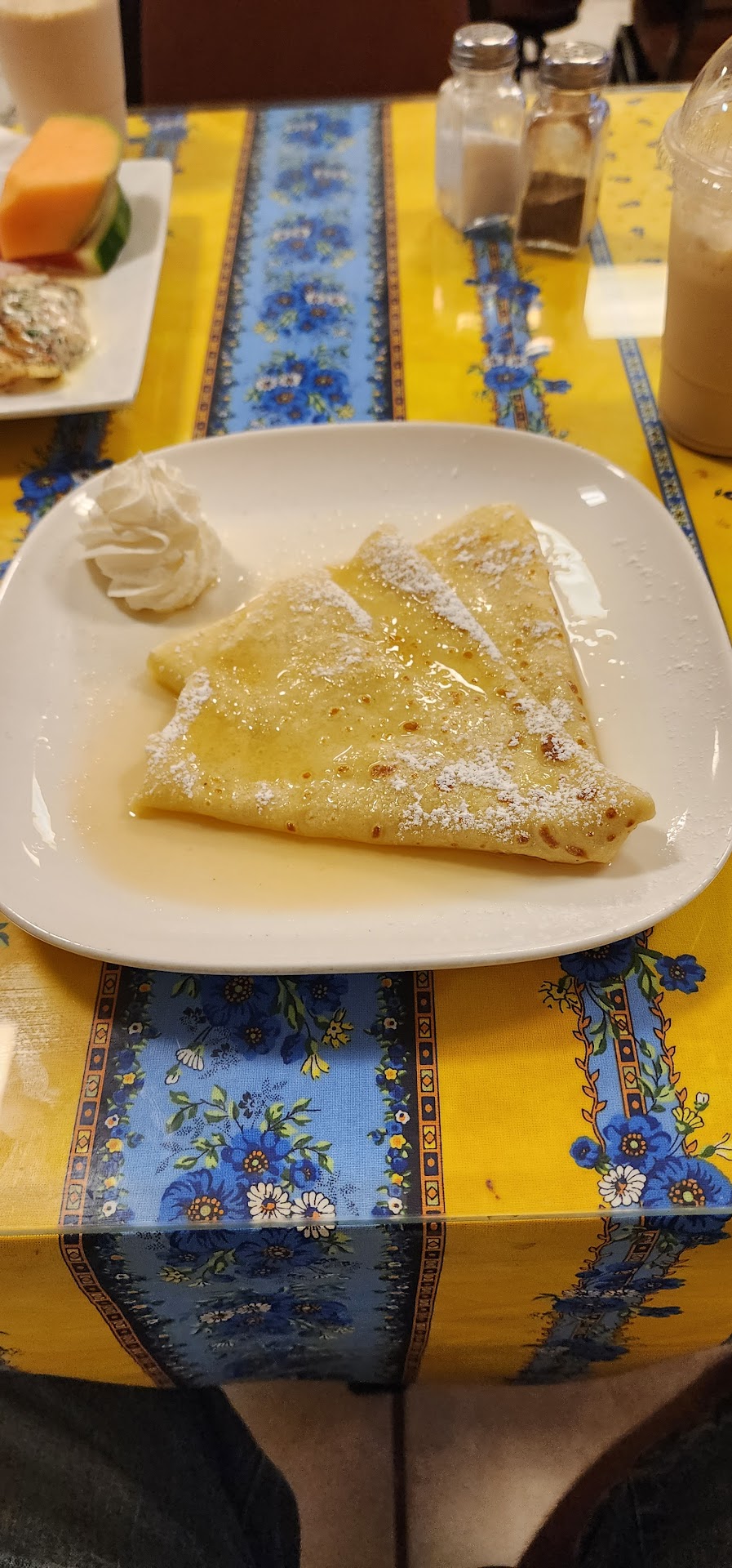 Read moreI really wanted to give this place a fantastic review since it's a little mom&pop shop but I wouldn't be honest then. We went at 11am and was greeted at the door and asked if we preferred inside or out. We chose inside. I picked the place for the Crepe Suzette because I've always wanted to try it. It was delicious, but if you have any appetite, you better order something else with it. My two issues are it seemed to take an inordinate amount of time to produce it; especially, when a couple that came in after us were served their meal a good bit before us and the lady's dish was more complex than ours. My wife had the quiche Lorraine, which appear to be pre-made as they're on display in a case and mine, of course, was a crepe with marmalade and a splash of Grand Marnier. I got the impression if you were recognized as from New York, you were prioritized. Other than that, I can say the food was good, the prices were reasonable and the...