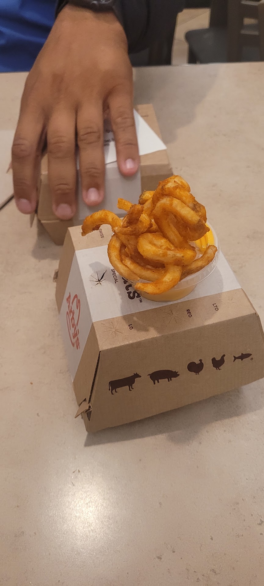 Besides the behavior from the manager, the food was also disappointing. I got the small smoked brisket combo and the fries were all little crumbs and broken pieces. I only got three spirals out of that whole box, and the smoked brisket sandwich tasted like fried matter and the only flavor was from the brisket sauce. The only good thing about the meal was...