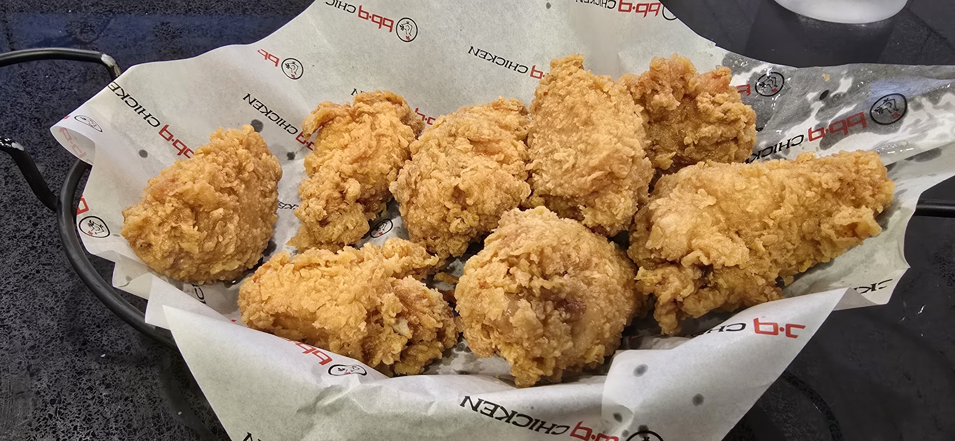 Read morei live local to pd so when i get cravings of korean chicken i usually go to the bb.q locations in the oc area. i would definitely say the chicken in oc is better by the mile, the chicken over there has more flavor and is more cripsy and airy. the service and environment in the pd location were good, employees were kind and i felt like i was in a korean chicken pub. i got my order to go and i got the soy garlic and spicy galbi boneless as well as rosé tteokbokki and cheesling fries. my mom bit into a piece of the galbi chicken and it looked really old to the point of molding. other than that the only complaint is that i wish there was more flavoring/sauce added to the chicken, and that it was crispier as the chicken came out “fresh”. the cheesling fries and tteok were pretty good the cheese on the tteok looked like someone put 3 cheese blend on top😭. i will still come back but the piece of chicken we recieved really threw me off and caused us to throw it away. i definitely prefer the oc bb.q but would still come back. if youre the owner please be more aware of how fresh the chicken...