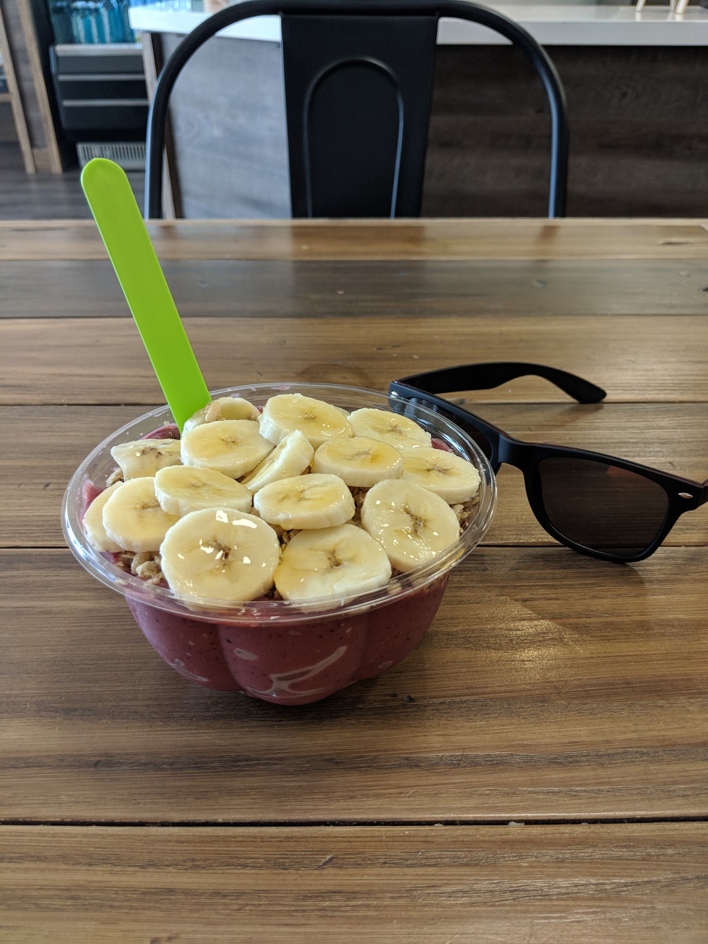 The PB Smoothie was OK, it was a bit sweet and tasted like it had strawberry purée with sugar in it instead of regular strawberries. The açaà bowl was OK, not super flavorful.