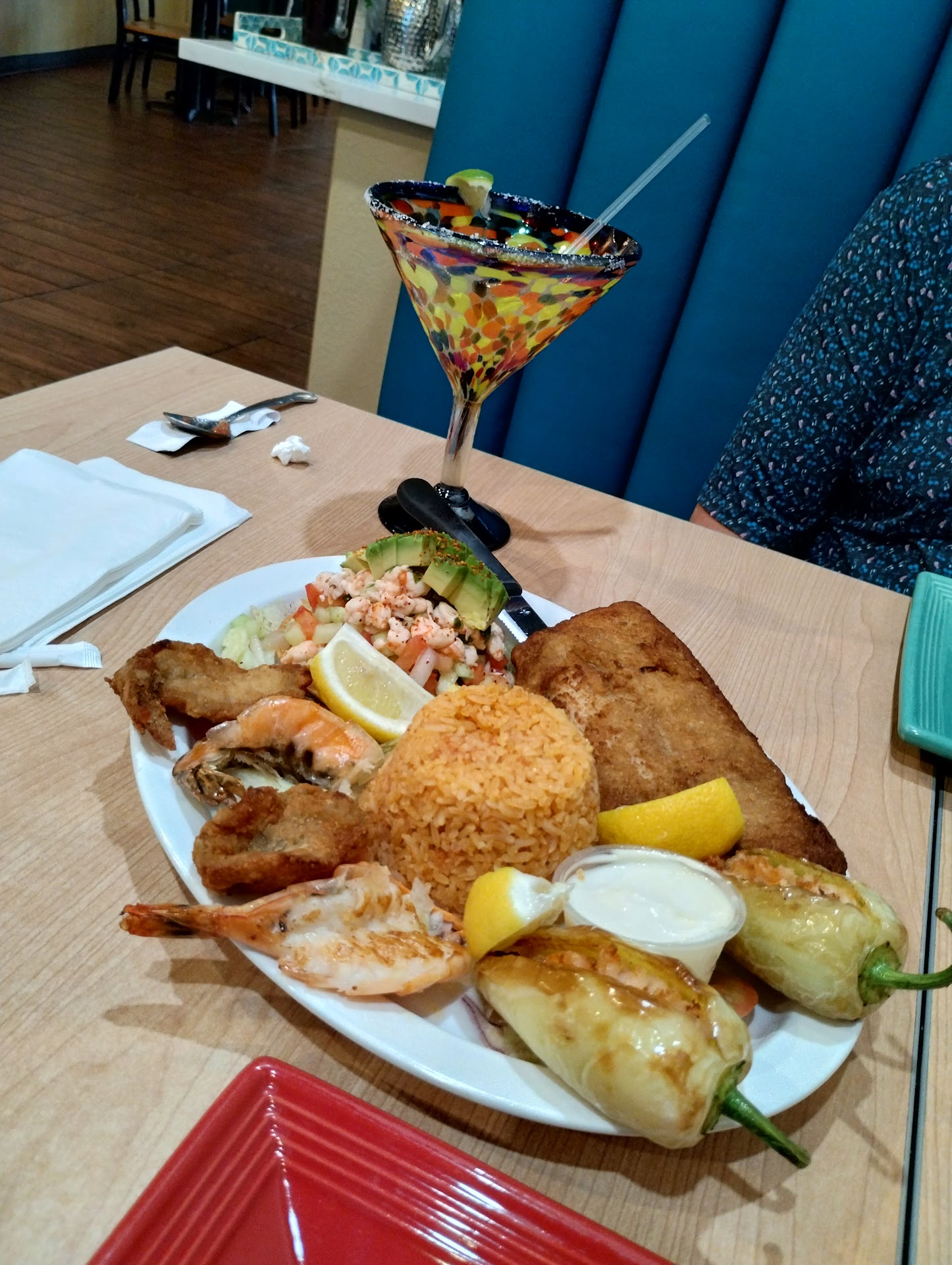 We shared the Combinacion de Mariscos, which was a selection of seafood items, and definitely large enough for two people. The shrimp-stuffed peppers may be my new favorite food. The ceviche was beautifully fresh, and the fried fish was tasty and not greasy at all.