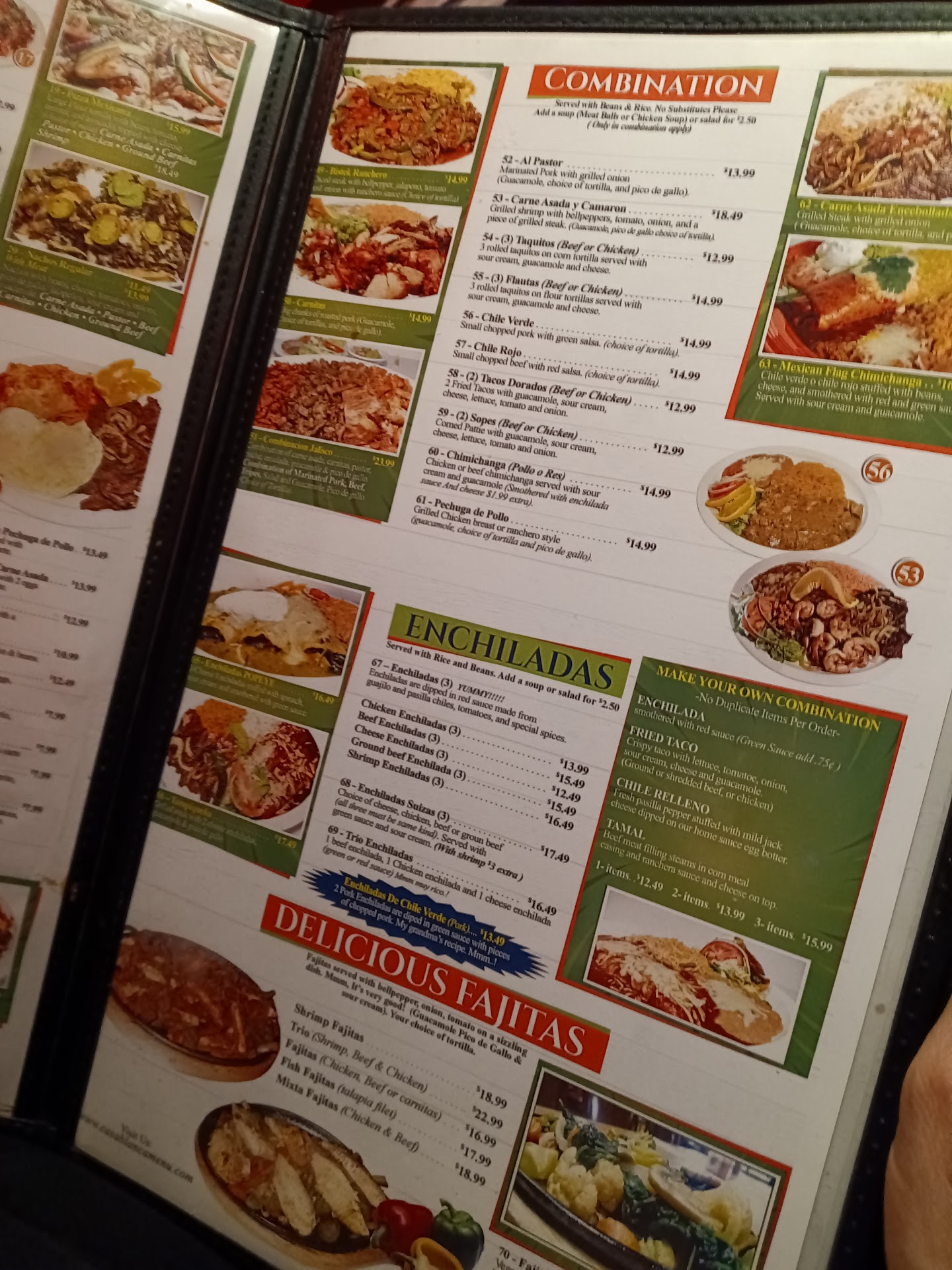 I will preface this with, it’s mid July and staffing is reduced most everywhere because its low season We do like the low foot traffic this time of year. We were seated promptly and only two other tables, now 3 & a couple at the bar. First time visit and we were wowed with the cocktail menu and I don’t drink any longer, but if I did this would be my go to bar. Tropical drinks galore, two colorful pages of nothing but amazing cocktails to include some great classics. We were promptly given chips & salsa, and our waitress Karen came along to get our beverage & food order. I was wowed again by the extensive menu, some great traditional classic entrees, every kind of burrito & taco, including beef birria, tostadas, tortas, a variety of soup, seafood, molcajete, salad, appetizers etc. etc. etc. They also serve breakfast, more great options for the a.m. people. The food was very good, I had tacos dorado w shredded beef, and a beef tostada. My son had an el pastor burrito & two bottled beers, Ice tea for me & we shared a deep fried cheese cake for dessert and 2 cups of coffee. $63 WHAT? I had to double check to be certain she didn't forget something. Nope everything accounted for! Let me add, there was a flow of people after 7 pm that did not end. 7 tables all two tops & 1 on patio, then a party of 12 people rolled in. Only one waitress, a hostess, a food runner, a bartender and a lady who seemed to be filling in all the gaps. Karen was waiting tables, in the kitchen, behind the bar and where ever she needed to be. All the while cool calm collected. She had a GREAT team, all great attitudes and very professional behind her and they all moved fast & efficiently. The tv screens featured multiple events, soccer, baseball, and the drag races ❣️ the music with soft great latin music had me tapping my feet & wanting to dance. I loved everything about this place down to the beautifully colorful & festive interior. Can’t wait to return for the molcajete, and fajitas, and some great Mexican soup...