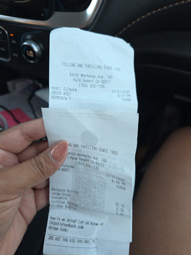 Read moreWent with my daughter around 730pm Monday 4/14. Had THE WORST CUSTOMER SERVICE by according to the receipt "Wendy" . There was a family of 3 eating in. Saw 1 other employee, 1 gal came in behind us. It was not busy. "Wendy" was visibly annoyed in tone & facial expressions to do her job tonight, from the moment she saw us. Like I said it was not busy. She washed her hands, thanks. But no hair net? No gloves? The counter was filthy! Do you need a food habdlers card to work here? Curious to know what your health dept rating is. She slapped our bowls together sloppily (see pics) We asked for pinto beans, she gave us extra black beans. I let it go as I had to eat to take my insulin by 8pm, we'd pick them out rather than make her more irritated. We both had chicken bowls, she said there was only enough chicken on her line for 1 bowl: She eyerolled & dumped some chicken out to her left my right and finished the bowls with fresh container of chicken. She made little eye contact w/us. I had to wait until she served the gal behind us to ask for my receipt which she eye rolled again and ripped it off hastily. I remained polite, because I work in food service for over 10yrs. She made our whole dining experience miserable and we love CHIPOTLE. We rarely eat out, when we do, it's a treat and we frequent the PS location, which is immaculate and all the staff say welcome. My daughter had been looking forward to this all day 😞We frequent the 1 in PS when we do go. My eldest daughter used to work for this Co...I am APPALLED. We will NEVER return to this location. To top it off, our bowls were cold. Do better 'Wendy' . We've all bad days, I get it but this was unacceptable...
