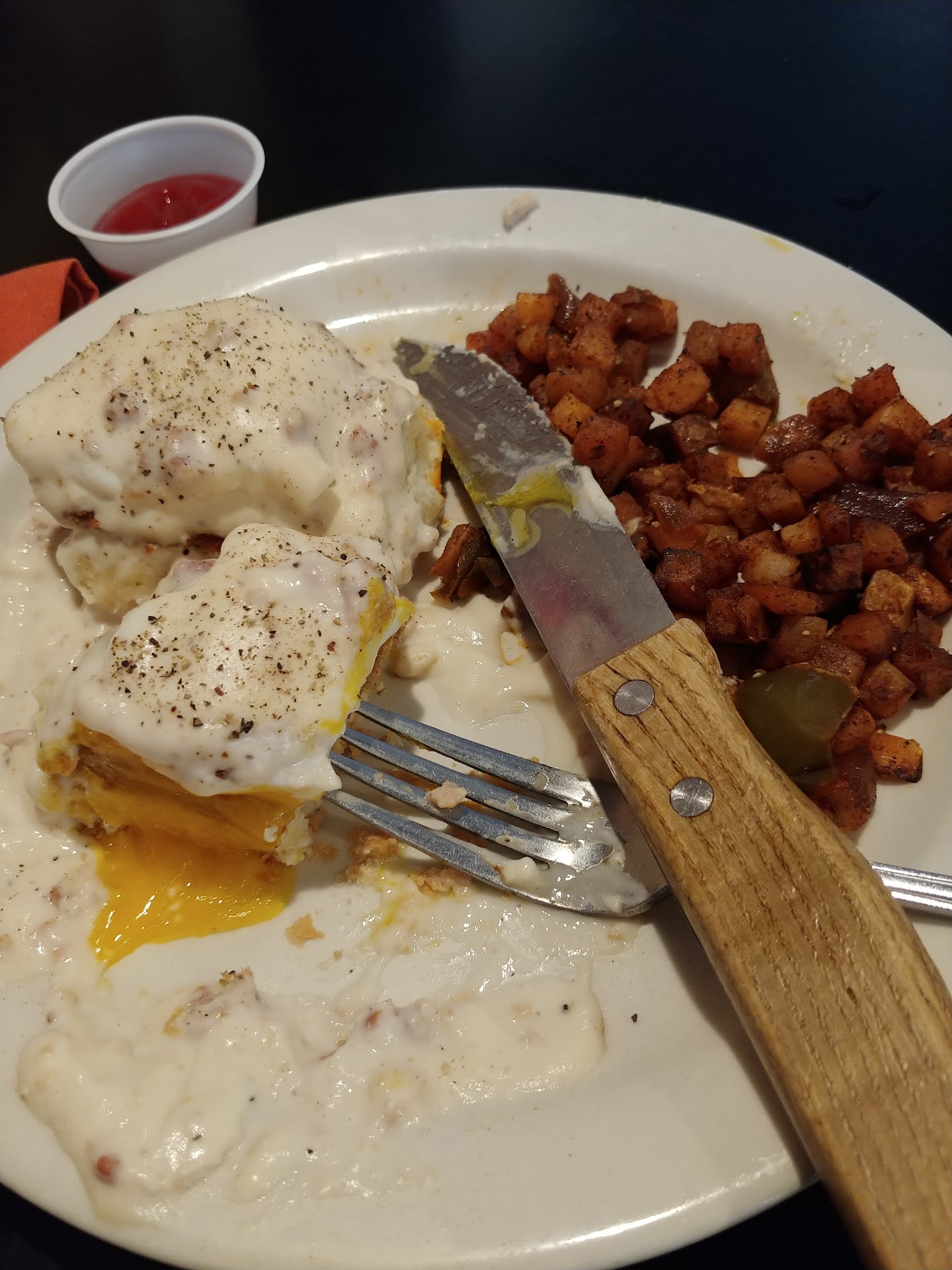The food is generic. But that's not the problem. The country potatoes were slightly burnt, and wet with grease. The entire sausage Benedict was almost flavourless, I was shocked at just how.bland it was.
