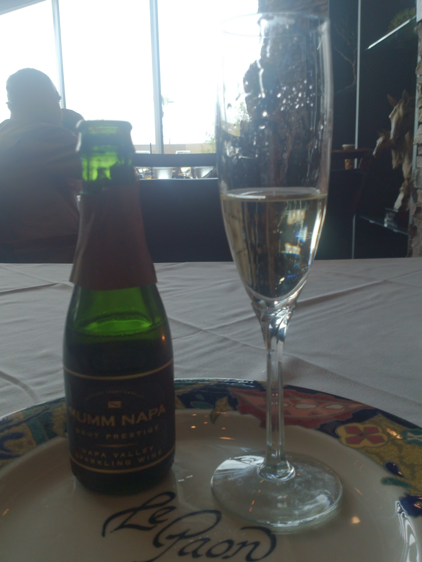 Started off with a crémant/sparkling wine by Mumm Napa which looked like a Blanc de Blancs made from Chardonnay grapes. This brut had enough residual sugar, slightly creamy w/ a bit of acidity which was ideal since the day was humid from the summer monsoon.