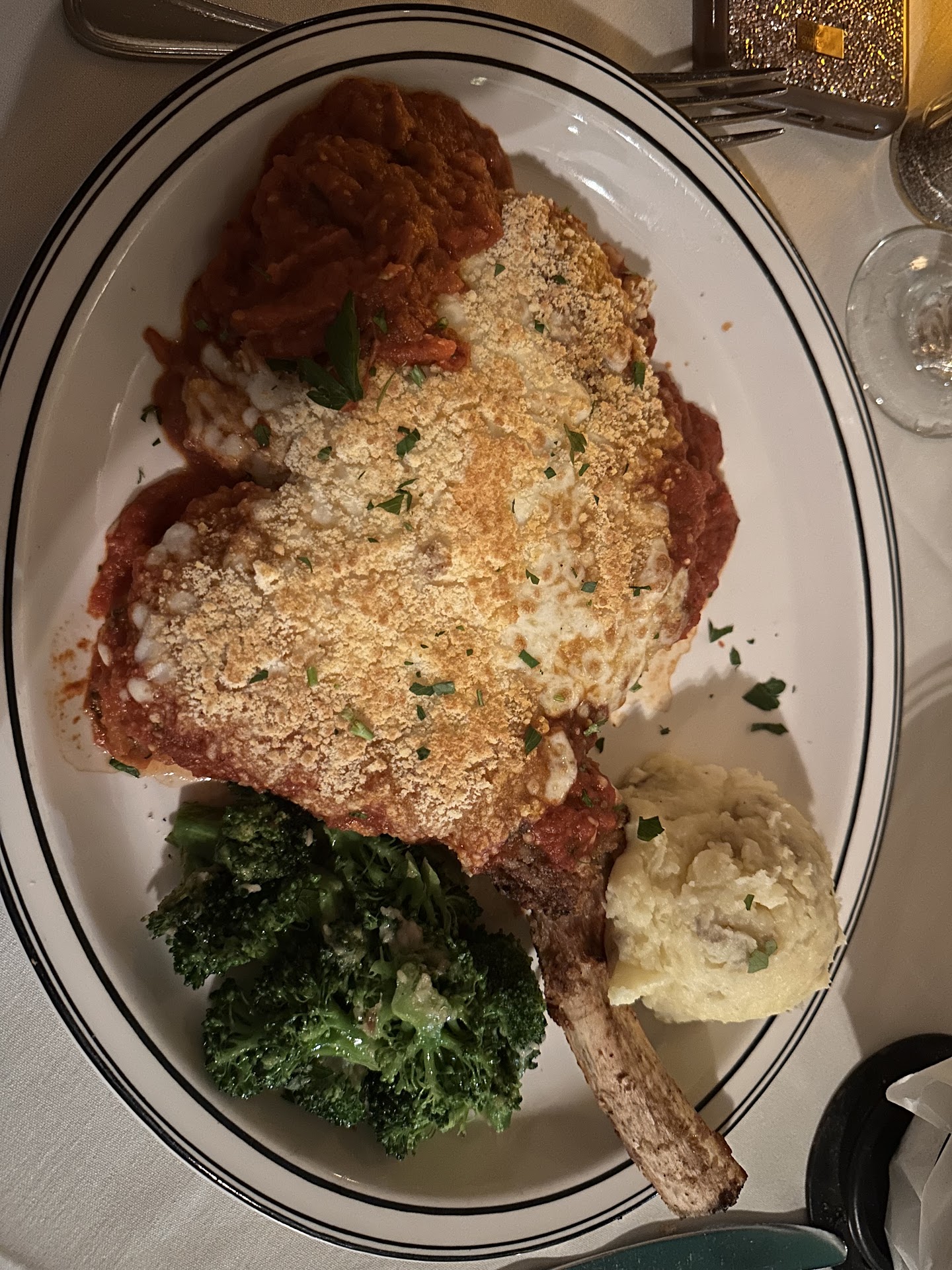UPDATE 05/11/23 5:00p.m.: This time, we were a group of 4, and we sat outside in the patio area. An eyesore is the outdoor dining area built during COVID. I think it's time to go. We had a super waiter and busboy, very polite and friendly. To start, I had not just a Lemom Drop Martini, but a Limoncello Lemon Drop! Delicious, but very sweet and not much alcohol. My sister had an Italian liquor spritz which I can't remember the name of (but i took a shot of it on the menu). I believe our other diner had a Pinot Grigio. For starters we shared an appetizer of Polenta with Mushroom sauce- Yum! Two diners split a wedge salad, they said were tasty. One diner had a cup of Mushroom soup, which I tasted, that was good. For dinner, I had Veal Parmigiana. It's not on the menu, so they made it special for me. It was very tasty. The glazed carrots on the side were so delicious as was the buttery Polenta. Another diner, who really likes mushrooms, had the Stuffed Ravioli with Mushrooms in a creme sauce. Another diner had her favorite dish, Sand Dabs, which didn't disappoint. Our last diner had the Seafood Pasta Special, which was coated in a light white wine sauce, served with Tagliatale pasta. She liked it very much, and cleaned her plate. We did indulge in dessert, as it was a special night, and we shared a Chocolate Mousse, which was ok. I sensed that very fine chocolate was not used and too much whip cream was folded into the mousse. Hands down best mousse is at Chez Pierre's and I compare all to his. We also ordered a Creme Brulee, which was perfect. A little chilly on the inside, and the top a little warm from torching the perfectly crispy, crunchy sugar layer. Overall, it was a really delicious dinner. Though be prepared, prices have gone up.