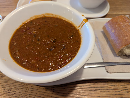 This Panera and the people here do not focus on quality. They are "too busy." Yet we as the customers pay their bills. I know fine dining, hospitality, casual dining, fast food, and everything in between. This place needs help. I took my baby in here after having a bad experience at Pho Vu down the street! Thinking this would be better. The service is terrible. The lady who took my order at the front should not be working there, or offered some severe training to up her effectiveness there. A robot could have done better. She was like talking to a wall. I had to pry information out of her about what my options were when it came to ordering sides. It was literally painful to order. And what happened to them taking food to your table? You have to go get it yourself? I asked for a side of bread to go with my "You pick two;" she corrected me nonchalantly "French baguette." Yes, chick, bread. I want the bread. I asked for a sliced apple for my son's side for his Mac n cheese and she said she could ask but took a big huff (breath) in and acted like it was a big deal. I told her the last panera did it for me so he won't choke. She said she'd ask. (Ask?) Cut the damn apple! Lol! Or are you going to hand me a steak knife to do it? What happened to service? After my order I go to find a table in the corner, which ALL OF THEM ARE DIRTY. INCLUDING THE CHAIRS. I ask the lady at the food making counter to please have someone clean a SPECIFIC table for me. She asks me to sit somewhere else. I tell her all of the tables are dirty. I wait nearly five minutes with a diaper bag, a purse, and a baby in my hand after grabbing my own high chair and standing by the specific table I want. Standing. Standing. Standing. No one comes. The same chick who was at the front who took my order walked right past me to the patio doing nothing, wandering. I go back to the food counter and ask about the table to be cleaned. She says she sent the girl but they are busy and understaffed. I told her I understand, BUT my time is valuable too, it's been at least 5 minutes, and I have a burden in my hands! (Still holding baby, big diaper bag backpack, purse, and no where to sit without getting my butt dirty) Finally someone comes to wipe down the table and the booth and I can sit with my baby and sit my stuff down. When our order comes up soon after, the apple is not sliced. I don't want excuses, I want better service. Compassion. Empathy. BASIC CUSTOMER SERVICE. Basic intelligence? Artificial intelligence? I...