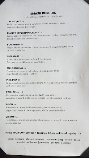 Read moreGroup of four. I had the pork belly smash burger—incredible! Pickled onions, creamy avocado sauce. The pork belly was so sweet and complemented the beef perfectly. The sweet potato fries with a habanero cream sauce were both sweet and spicy. Two had the project burger. A fairly plain burger done perfectly—exactly what they wanted. The fourth ordered two tacos—one shrimp, one pastor. He liked the pastor much better. The shrimp was a little tough, probably overcooked a bit. We all ordered shakes. Very nice. The owner/manager also runs Crudo in Palm Springs. This place is just as good, just a totally different concept. We...