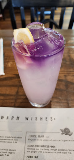 Second, and most important, the drinks and food were top notch, Honestly I was a little worried when it came out because they aren't as piled up as your typical cheap American diner but it was perfect. We still left stuffed. My husband ordered the breakfast burrito and "million dollar" bacon and I had the mushroom and swiss omelet with a glass of "purple haze." I originally wanted to try the citrus hibiscus punch but they were out. Happy mistake because it was the most delicious drink I've ever had in my life. I took a picture of the ingredients to try and make it at home.