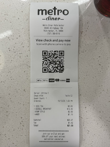Read moreSince apparently I was the first customer to order their Chicken and Waffles at their grand opening today, I feel obligated to leave a review. I’ve been to a few Metro Diners before and this one didn’t disappoint at all. Great service, bottomless coffee and the food was great as well. As I said I got the chicken and waffles since it’s my favorite of the locations, fantastic as always. Fluffy waffles and half a chicken (not tenders) leg, thigh, wing, breast all there fried to perfection. I also got their cheesy grits , so tasty! There was cheese on the bottom of the dish!!! That was awesome in my opinion because you shouldn’t just have cheese on top. Yummy Our server was on the ball and friendly. Will be back in a few weeks for dinner and just in general, glad to have a great diner in...