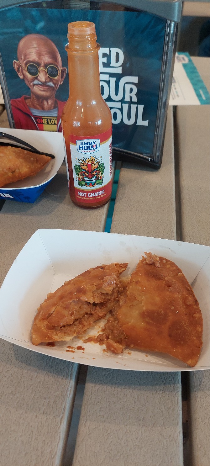 Read moreJust not the vibe I was expecting. Love the decor, but food was, ehhh. Hot sauces were great! Purchased a couple of bottles! It has lots of potential, but I believe this place would better in a downtown setting, where you can walk up, order a drink and an app, get your meal and drink, hang out and keep walking. We love trying new places in the area, and we were looking forward to trying. Not our forte. Great if you want to meet up with a friend and have a beer and a quick bite, but def not a date restaurant. You order tour food at a checkout, pay in advance, get food delivered to your table with a table number, and don't forget the tip. We ordered a couple of empanadas to give it a try and the mojo fries. Not sure what was mojo about the fries, it was just salt,pepper and some spices, and some strange sauce that really did not compliment them whatsoever I was expecting some mojo pork on the fries considering the name. That would have def made it better. The beef and cheese empanada was nothing to write home about. Reminded me of a beef and cheese taquito from 7-11. It's much cheaper at 7-11, btw. The artichoke and spinach empanada was quite a different combo, but I tried it anyhow. Would not recommend. Cream cheese and frozen creamed spinach go better in a dip. Too heavy and strange in an empanada. Try if you like, but I would not recommend it. We haven't tried many other items from the menu, but our first impression on the appetizers was not great. Sorry , we probably won't be back. It's just not the kind of vibe I look forward to after a long week of work. Reminded me too much of a fast...