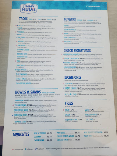 Read morePassed by this new restaurant and decided to try. While we prefer a more upscale food and service dining experience, the counter order was ok. The food, good, but I do rate it as fast food. The young man behind the counter was very friendly and helpful with my questions on the menu items. I ordered the standard tacos with blackened chicken and upgraded with fries and a coke. I chose the cajun fries, thought would be something different, they just sprinkle a little seasoning on them. They came out cold, even though I asked to make sure they were hot & fresh. The young man went back and brought me out a nice fresh order - thank you! My husband ordered the Kahuna burger and the fries and coke. I give the food a 3 because my tacos came out and it took another 15 minutes for the burger. I didn't like the tacos sitting on top fo the fries either. It is pretty much self serve and they don't check on you so, I don't believe tipping would be necessary. Our bill was around $35, not terrible but not great for fast food. My BIGGEST reason why I wouldn't probably return is the bench seating is very uncomfortable. You are basically sitting on a hard formica counter top. I think they really cut corners on comfort. The back rest has an overlap. The foot rest is way too low (my feet dangled at 5' 6, my 6' 2 husband as well, so all of the weight on this squared off seat presses into your legs. I loved the TVs over the bar with the different funny clips or the surfing, but I think they are hung too high if you are sitting at the bar or the seating at the bar. All in all if you want more of a fun fast food vibe, this is a nice place to go. Loved the vibrant beachy colors with outdoor...