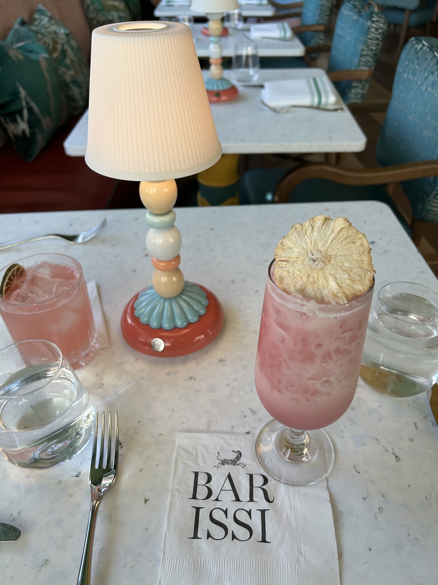 The space is beautiful. Part of what I like about the space is that the team responsible for the Interior Design/decorating bent the rules enough to make a space that unique, glamorous and a little bit surprising. Well done! The height of the space along with the lighting, fabrics and furnishings creat an atmosphere that feels exotic and daring. The illuminated bar top makes everyone sitting at it look amazing. Cocktails are well crafted and beautiful. The wine selections are lovely. The wine goblets are so huge that they make the pours â which are probably standard â look small.