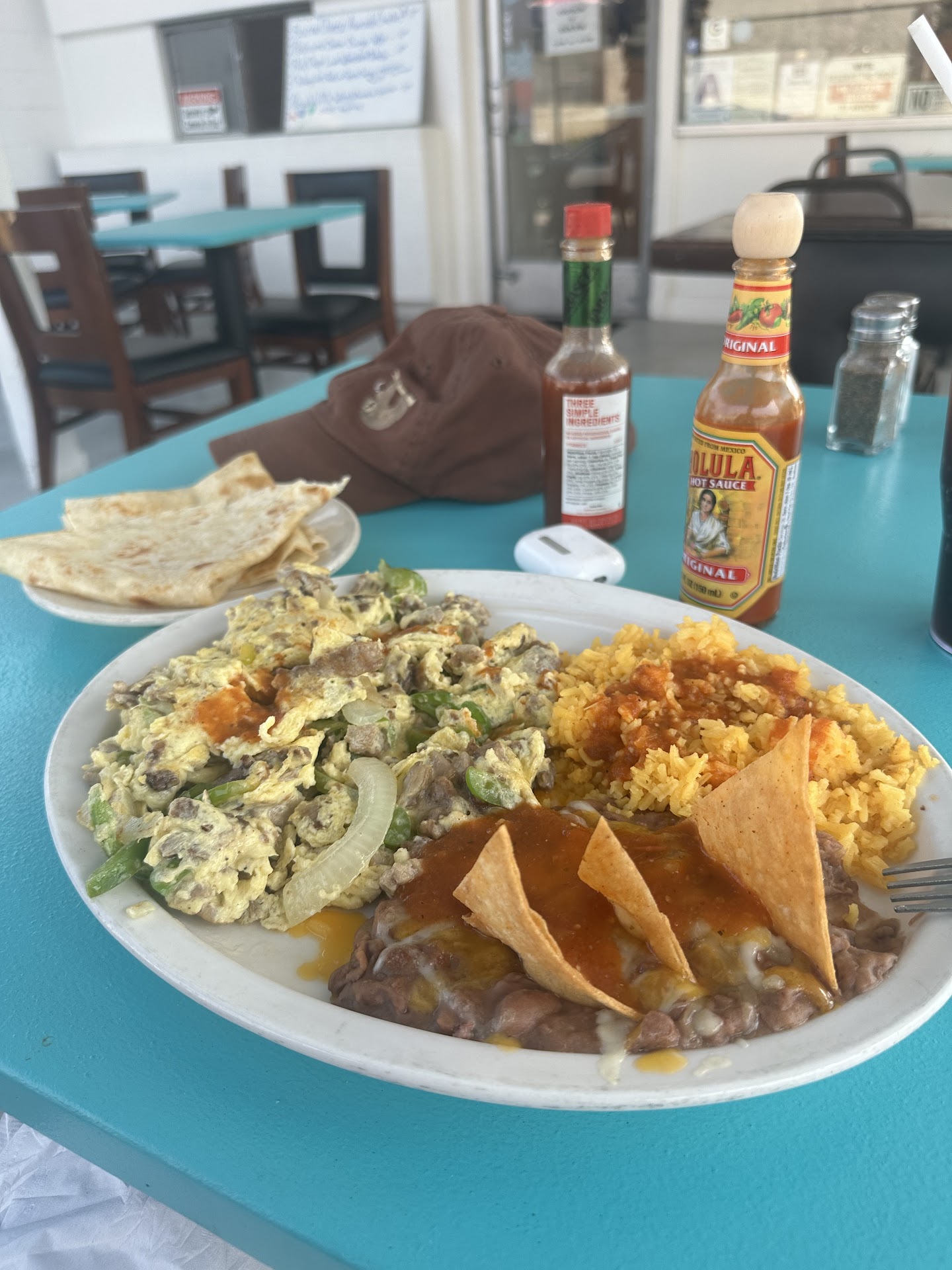 The service? Impeccable. The food? Well⌠letâs just say it existed. Tomku, bless his soul, had a full-blown existential crisis after his first bite of biscuits and gravy. I donât think heâs ever encountered such a texture in his life. He stared at his plate like it had personally offended him.