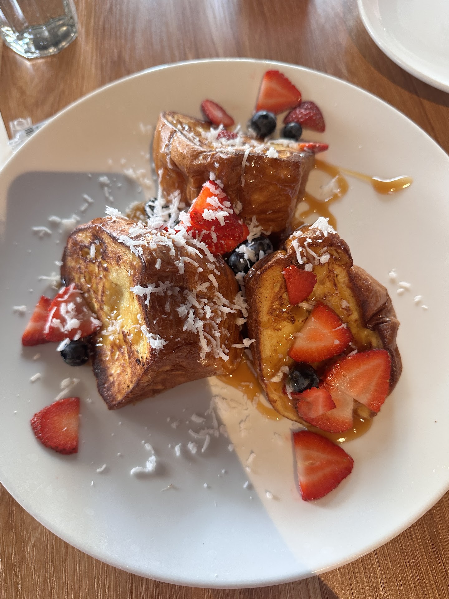 Read moreCame here specifically because I wanted the lemon ricotta pancakes. They sat us down, brought water to us and then nothing. We had to wait over 40 minutes to order. This was after waiting 25 minutes before we flagged someone down to try to order. He said he’d have to get a pen and would be right back. I proceeded to watch him stop by other tables, walk around a few times, enter things in the computer. Another 10 minutes went by we asked someone else, he said he’d get our waiter. At least another 5 minutes went by, and the original guy returned. He was about to take our order — literally started to talk to us — then decided no, he would bring to go boxes and checks to two or three other tables instead. We spent another 10 minutes waiting. He came back, I tried to order the lemon ricotta pancakes, the Tiki Toast, blueberry pancakes, a side of bacon, and pomegranate juice. Five to ten minutes, later the manager comes out to tell us they are actually out of all pancakes. He asked if we were overlooked and asked if we wanted anything else, but at this point we didn’t. He told us the meal would be on him and gave us coupons for a future visit. The Tiki Toast was a good French Toast, but it wasn’t anything special and it wasn’t worth the time spent trying to get the food and it threw off the plans we had...