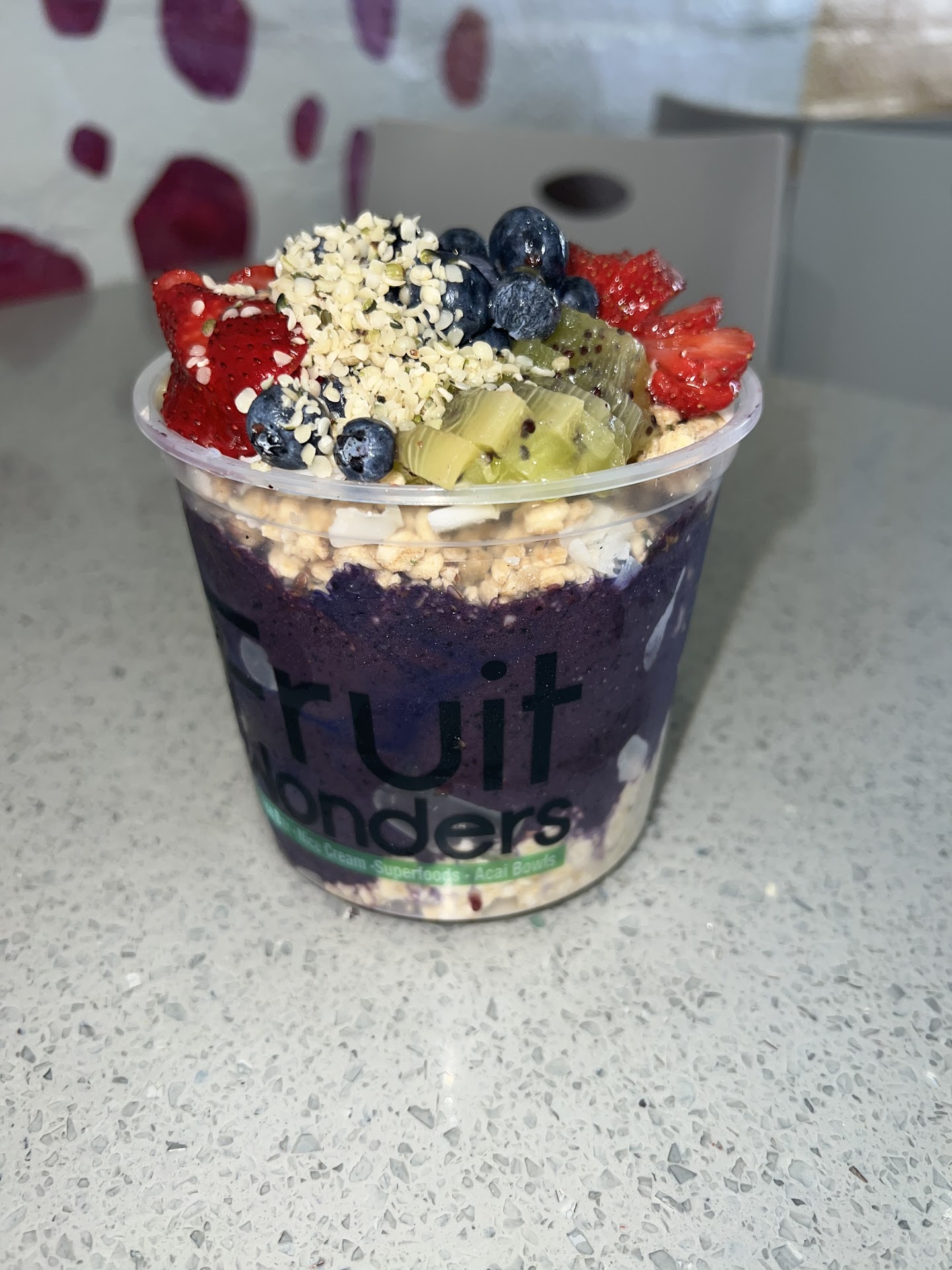 I went with the aƧaĆ bowl and added the blue majic to the base. Not my best choice, I think this altered the flavor a bit, but due to my own choice so I canāt blame the restaurant there. The bowl was filling and full of toppings.