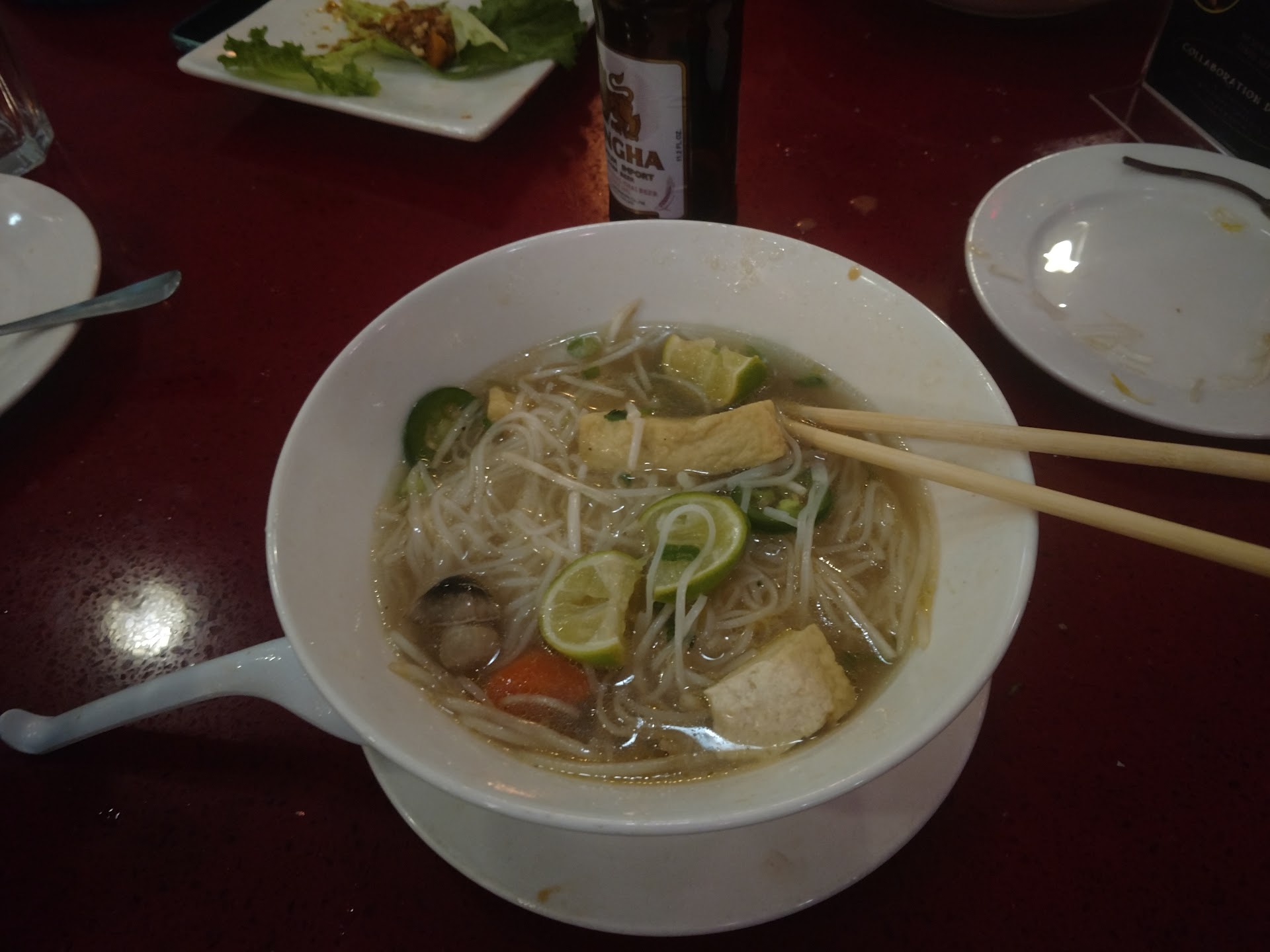 The Vietnamese iced coffee had a different taste than what I am used to; not as sweet (a good thing), but not as rich either. Still refreshing though.