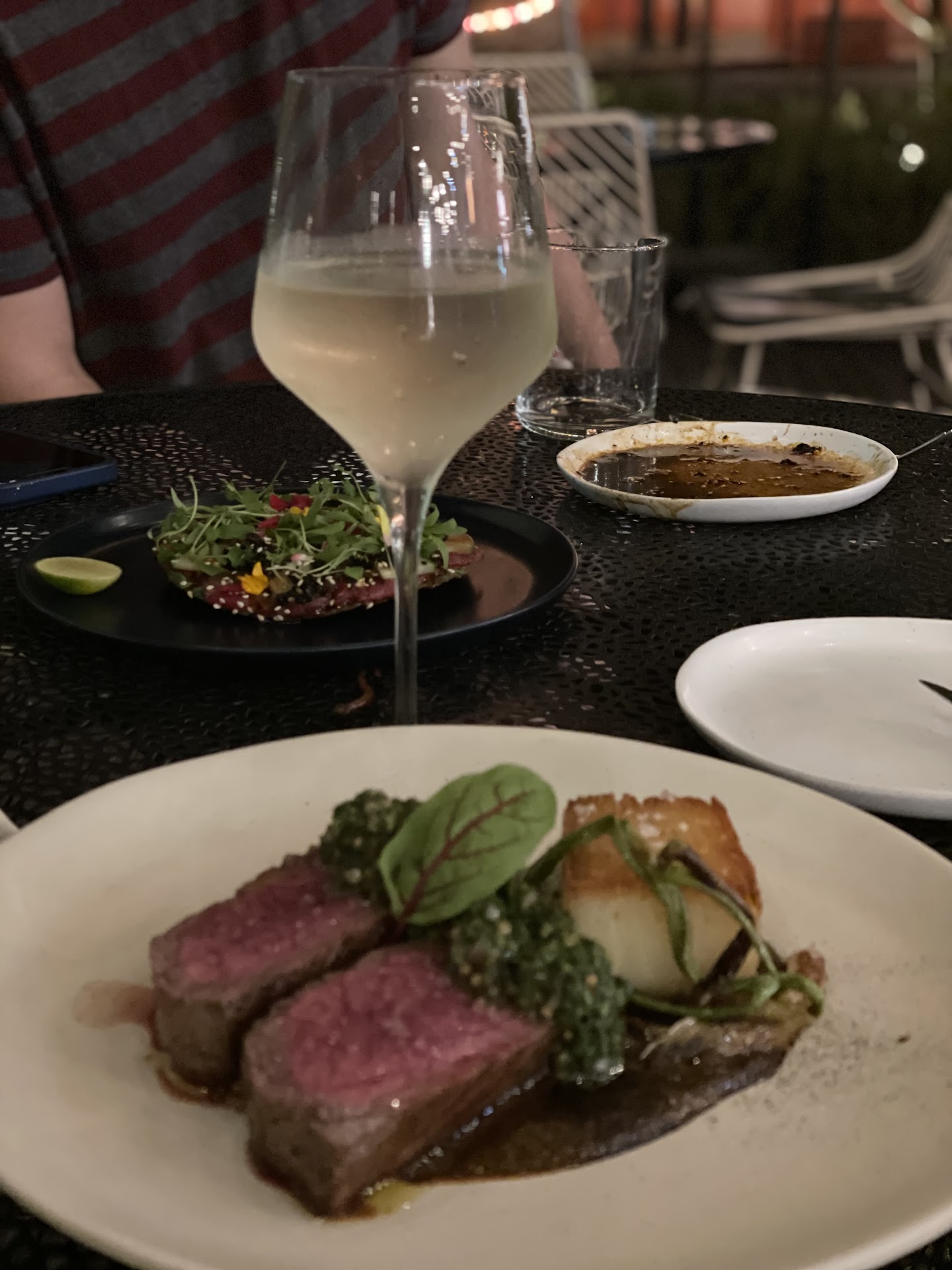 HOLY CRAP, we were completely blown away by Hoja Blanca. It’s a pop-up Mexican restaurant inside Truss & Twine on select nights, and it happened to be up and running on our first night in Palm Springs. The drinks were exquisite - unique and flavorful. But the food was the real star of the show. They were unfortunately sold out of the guacamole by the time we made it, but we shared the cauliflower equites (one of the most delicious things I’ve ever eaten), teteja, and the quesabirria tacos - absolute flavor and texture bombs. Everything was delicious and we rolled out of there feeling incredibly satisfied. Truly, some of the best Mexican I’ve ever had, not...