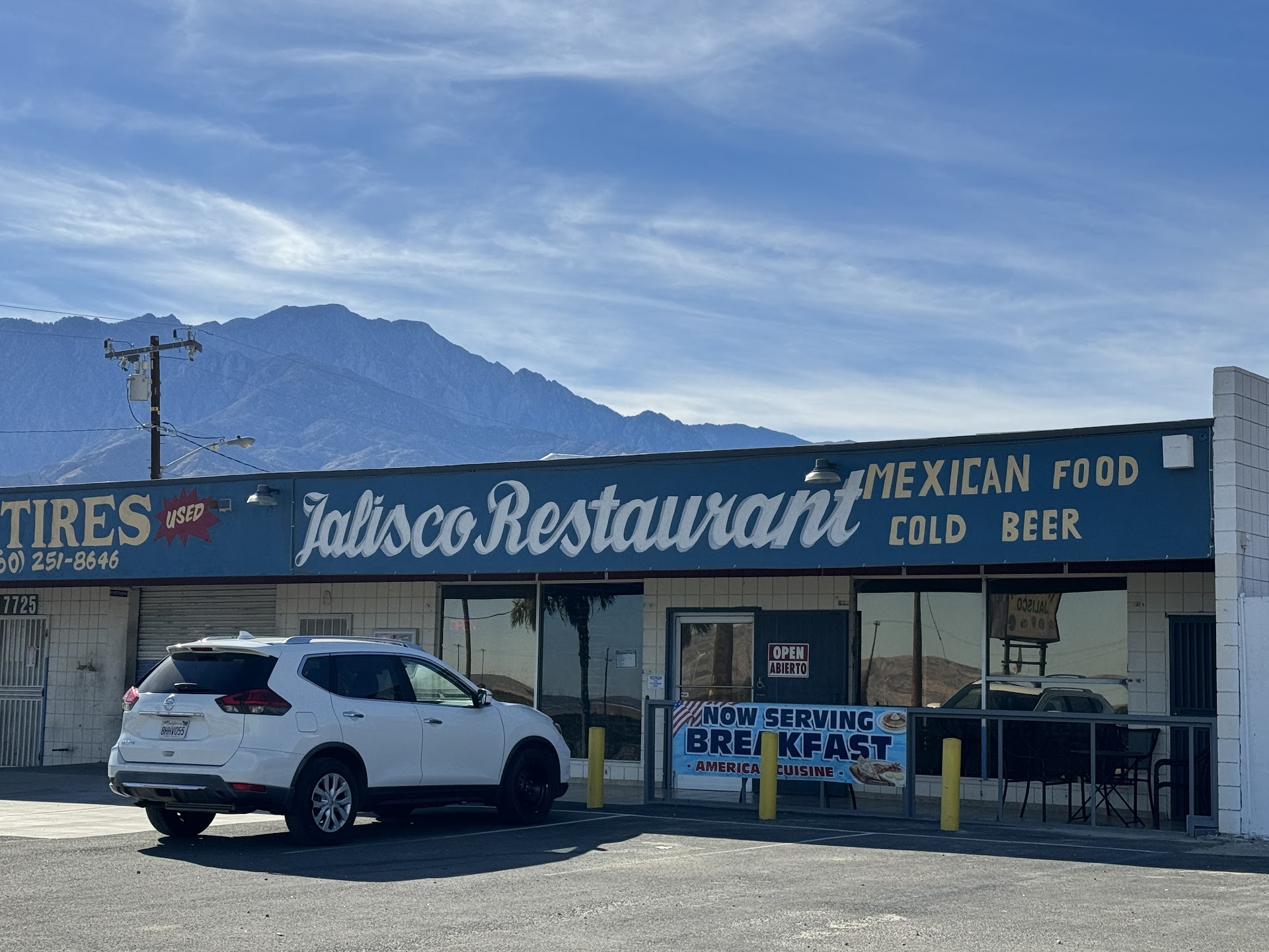 Read moreWasnât sure what to expect when I arrived at Jalisco, it was like a scene in a movie⊠picturesque desert, tire shop next to a coffee shop but instead its a delicious Mexican restaurant. (Jalisco a Mexican state located on the west coast, known for their diversity, beautiful landscapes and cultural traditions) servin up traditional foods such as; Chilaquiles Verdes, Huevos Rancheros, Sopes, Quesabirrias and Chile relleno. No worries, if you prefer an American meal, they offer that too; Eggs, bacon, sausage, potatoes and pancakes. My partner and I were there for breakfast, got the Chilaquiles and Patatas Bravas. The food came fast and hot. The flavor was amazing, umami with a hint of spice. We got to talking to the owner (Patricia) she was a sweet heart. She mentioned after the flood cause by Tropical storm Hillary which hit the area in Sept has caused the road to close and sadly thatâs a loss for potential clients. (The city doesnât have money to repair the road) Do yourself a favor, if you are ever in Desert Hot springs or even Palm Springs, support local business, especially this one! Canât wait to...
