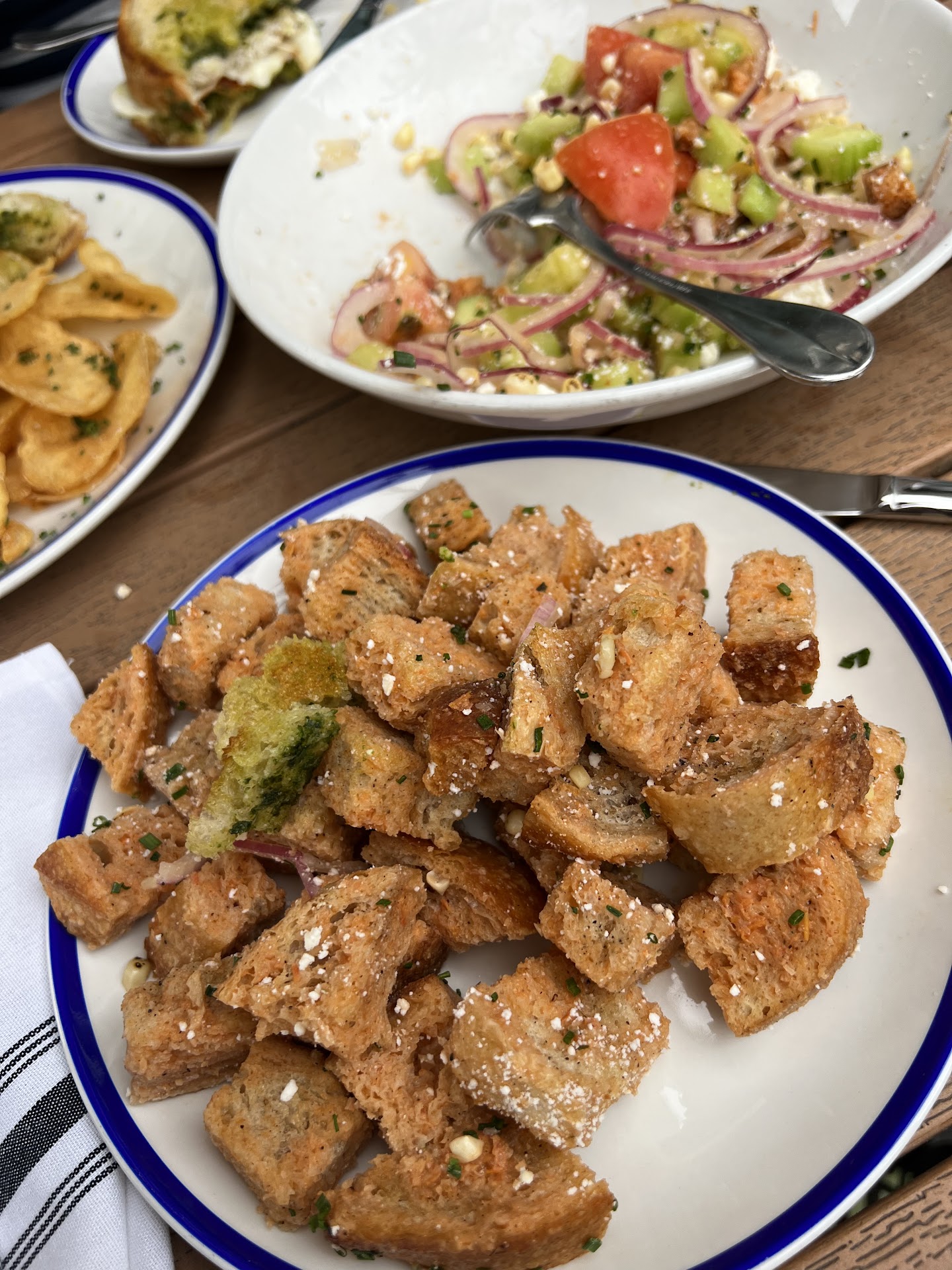 Service was lacking. From the front where you place your order to the long wait to get food, without anyone checking checking in after being seated. I would suggest not leaving your tip when you order and wait until you are ready to leave, and leave your server cash. Aside from the lacking service, the food dining experience was some of the worst we have experienced since moving to Palm Springs. Located in the Kimpton hotel, which we frequent when traveling, have come to expect a better overall dining experience. The food was mediocre at best. The flavors were off and after waiting 40 minutes to get food, it arrived cold. The baguette in the french dip was so hard it was inedible, even after soaking in au jus. The meat itself was almost tasteless and the fries were cold and had a weird flavor. The chicken sandwich bun was also hard and the chicken itself was the size of a small chicken tender and was barely warm. Can't imagine ever making the effort to return. There are plenty of 4.5 to 5 star restaurants within a block of here. I'd suggest...