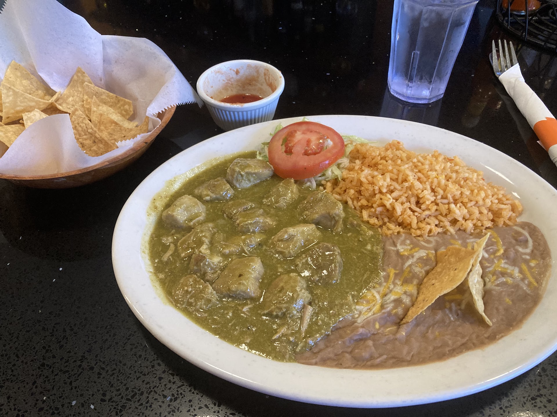 Had the Chili Verde and it was excellent and had tons of flavor. Rice and Beans were also flavorful. You can judge a Mexican joint by its Rice and Beans. Chips were good and the Salsa was a little different than I’m used to. Had good flavor but was loose, kind of watery.