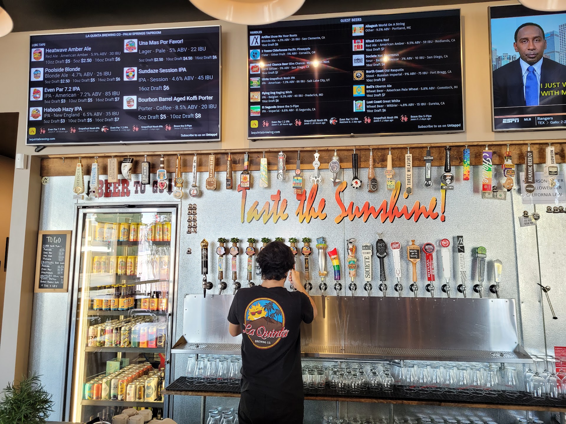 Read moreLa Quinta is a brewery on the northern part of the main strip in Palm Springs right below Johnny Bongos. Since they don't have over 50% of their profits coming from food, they cannot allow kids so it's 21+ only. They have a bunch of seating outside under misters when it's hot plus about a dozen tables inside as well. They have a bunch of beers on tap plus a bunch in cans. Their selection of beers is decent although I'd love to see some more collaborations with other breweries since it's a bit isolated out here. The staff are great here, so nice and friendly. Would definitely come here again, although they do close a bit early considering the night crowds...