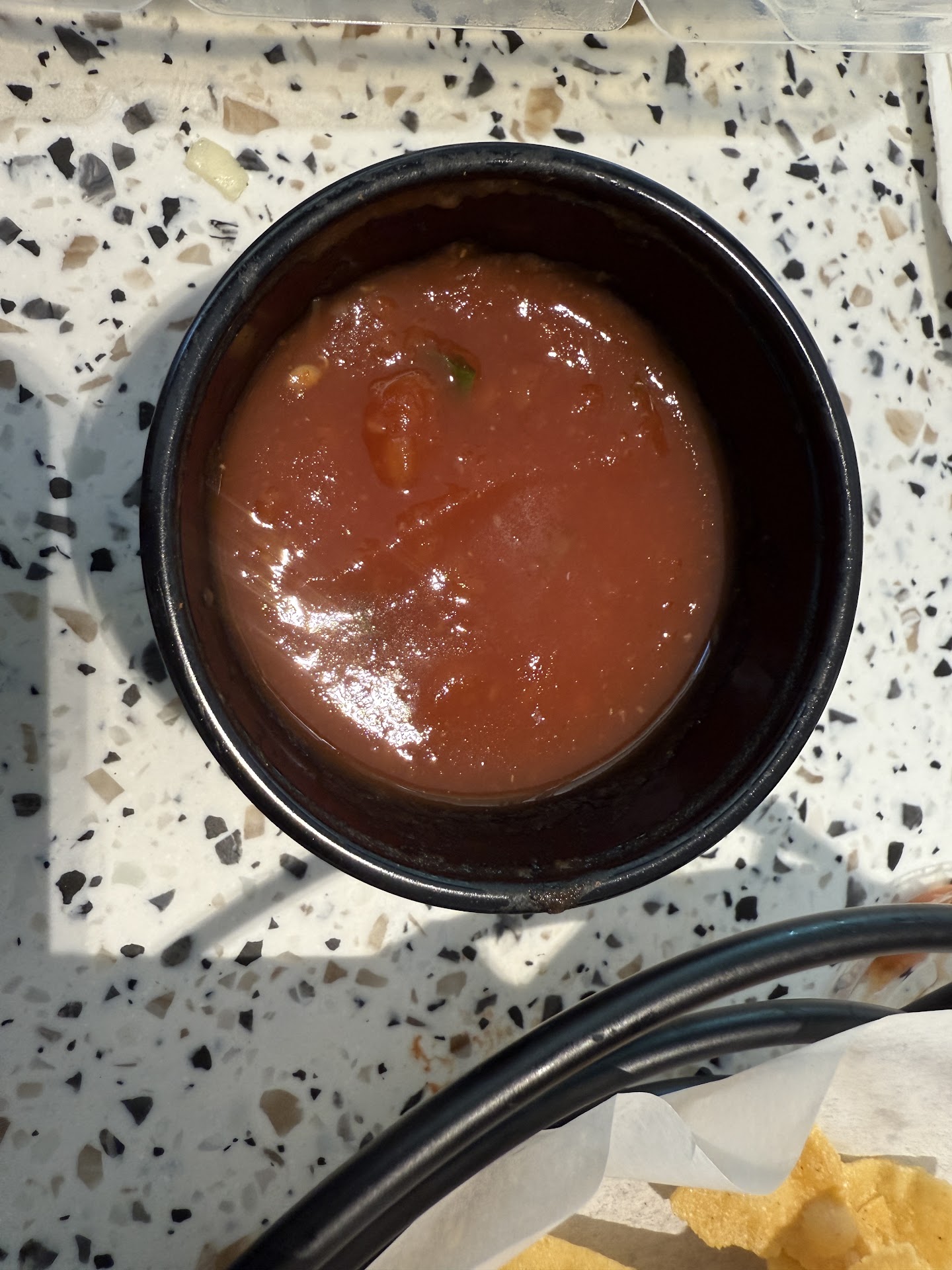 We love Las Casuelas! We were very excited to see an outlet coming to Palm Springs Airport, but sadly, we won’t be going back. It was busy when we were there. But the employees have no sense of urgency or service at all. They were standing around chatting with each other as customers were waiting to order or waiting for their food. The menu is kind of bizarre IMO. Potato tacos? For $23? Not for me. The chicken tacos we had contained very little chicken, but a wheelbarrow full of lettuce. The shells are tough as leather, while they are fried and should be crisp like they are at their restaurants. Salsa literally tastes like tomato sauce with a few bits of cilantro mixed in. Two margaritas, one 3-taco plate, chips & salsa (salsa pic attached), and $75 later it was an easy conclusion to not return. We are very sad about that!! This damages the reputation of the Casuelas brand, and the menu and service (i.e. employees) should be upgraded! The physical facility itself was pleasant, and the...
