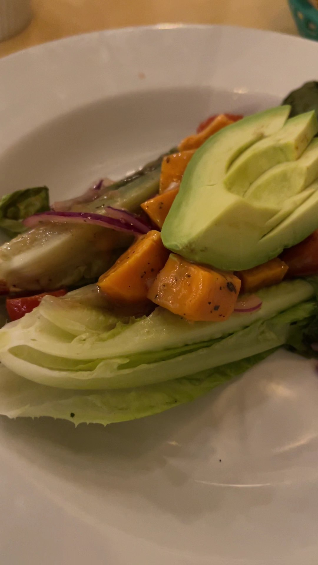The salad: it comes with a raspberry dressing which can be very sweet. I was hoping it wouldnât be too sweet but it wasnât sweet at all. In fact, it barely had any flavor and the âgrilledâ sweet potato had no signs of it being grilled.