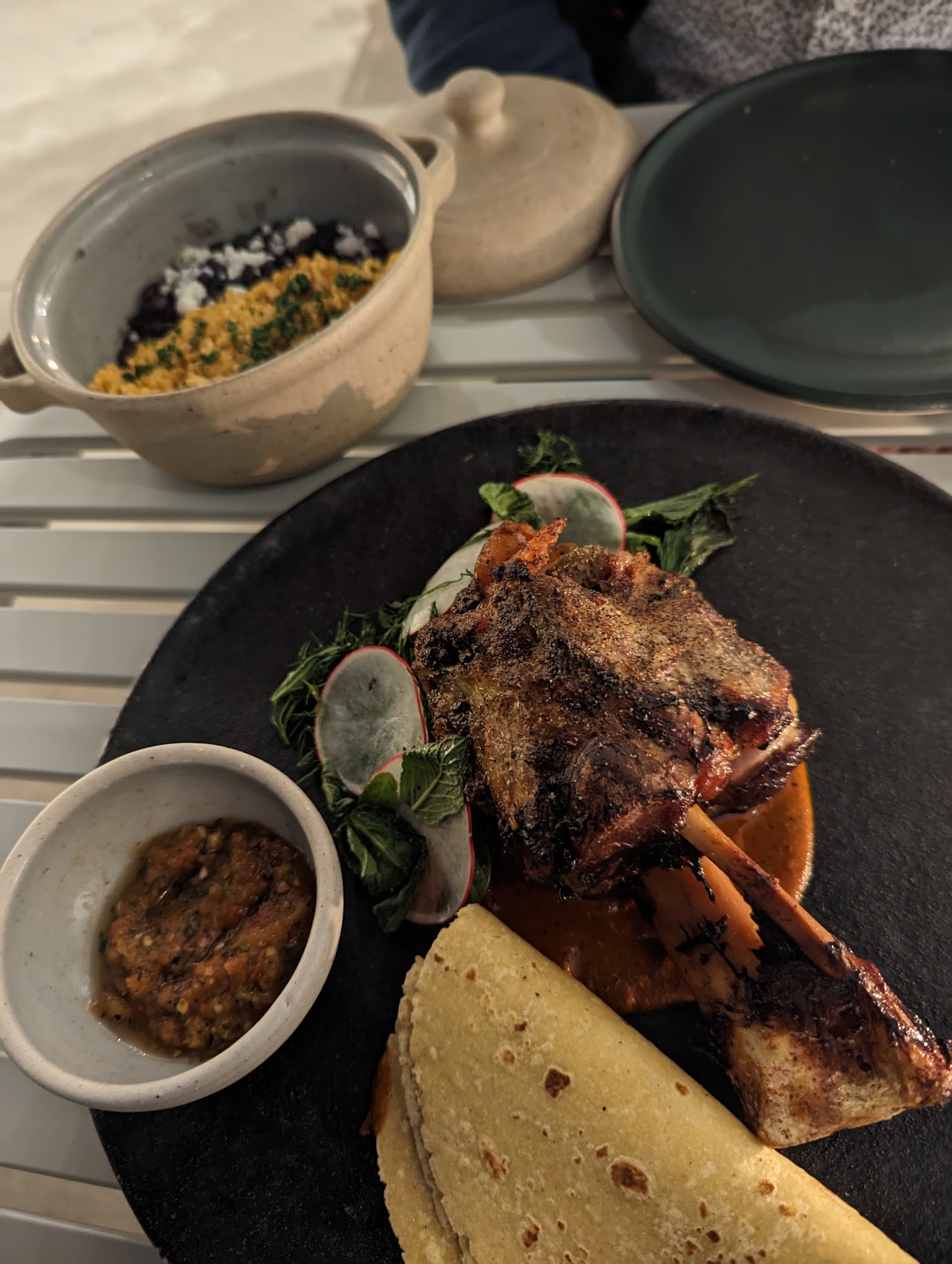We ordered drinks and some guacamole and tostadas to start. We tried to order a couple of large plates but we're told that of the 4 only 2 were available. They were out of the steak and chicken milanese. Disappointing.