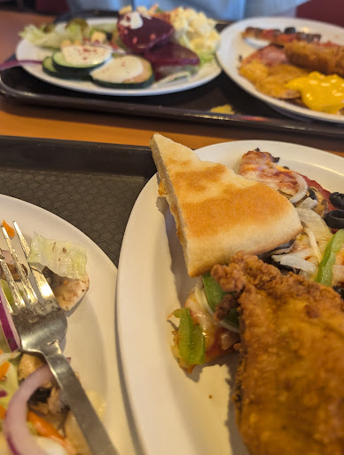 After a very long wait in line to order (with two parties ahead of me in line... one 6 top and one 3 top), I ordered the PCM for one. I was advised a 45 minute wait but wanting to try the food, I proceeded. My chicken and mojo's came first in about 30 minutes. The mojos were hard and on the cold side with little actual flavor and the chicken was greasy with a flavor of old stale fryer oil. My personal pizza came about 5 minutes later and was also disappointing. The sauce is very sweet, tasting a little off, like gas station pizza, perhaps? The crust was rubbery as well. Salad bar looked very limited with few choices and lots of empty spaces for other potential offerings. This was a Sunday evening and they were busy but the quality of the food left me feeling as though I wouldn't return even if they weren't busy. That being said, the arcade looked to be a decent distraction for families with little ones waiting for dinner and many were enjoying large pitchers of beer. Maybe with enough desperate hunger and some alcohol, my food may have tasted better? It was an experience (my stomach hurt for a couple hours after) to have tried their food but I am prone to skipping future...