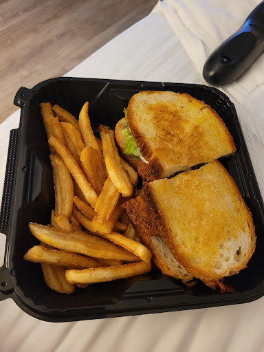 Read moreLiterally giving it 1 star for false advertising. It's the Denny's. I walked here bc I wanted to stretch my legs, and I was like "huh?😒" Also, I wanted a sandwich and the sandwich that I ordered was fried chicken, bacon, lettuce and tomato, cheese and ranch and it was good but super salty and i couldnt finish it. It was the batter for the fried chicken, not even the bacon. The fries were alright. I also paid $18 for it. So it wasn't that great overall...