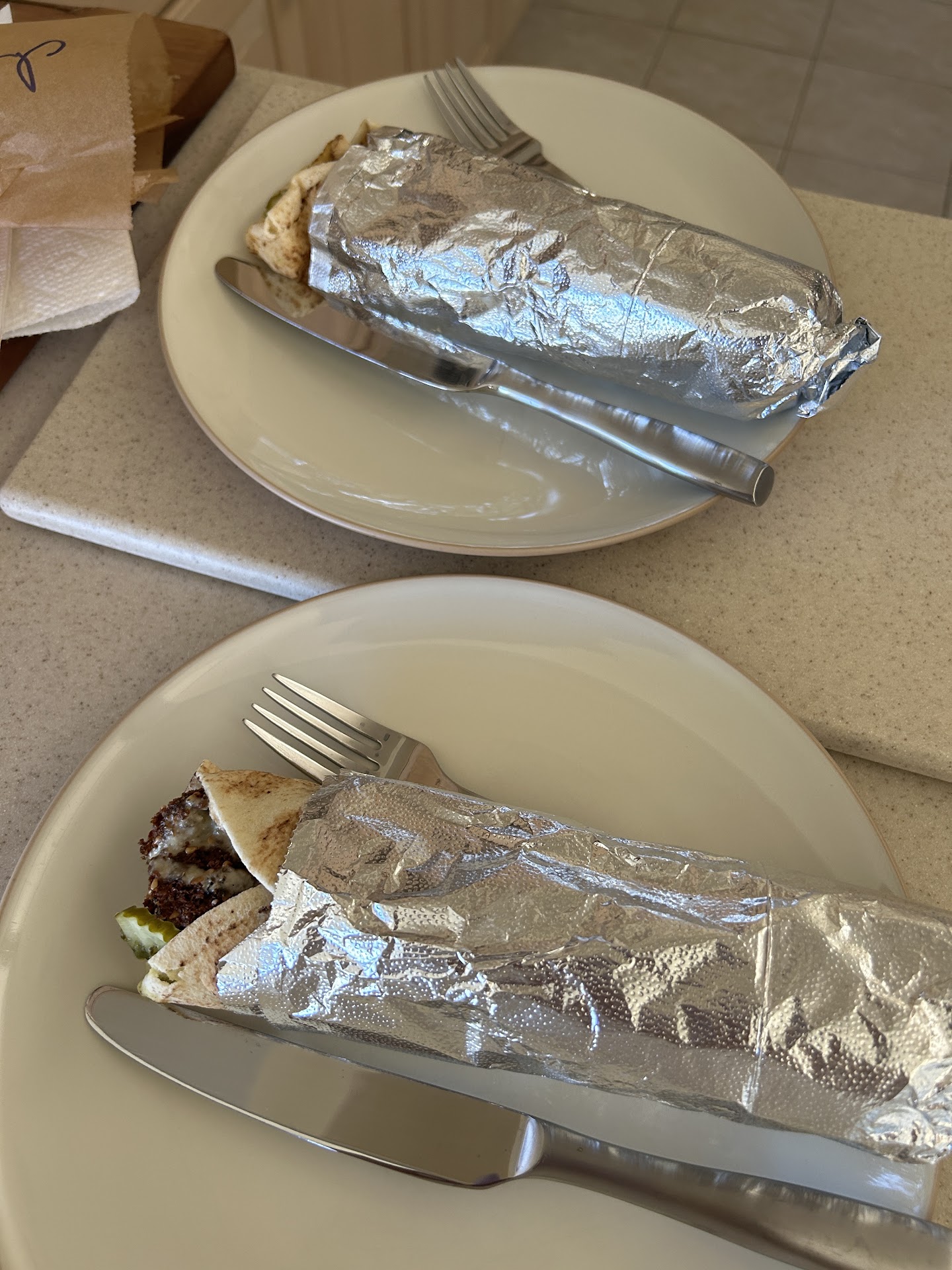 Staying nearby for a few days and this was one of our chosen dining spots. TOTALLY enjoyed it. Before I roll on the review itself, I want to point out that they have two doors but they are for separate units - go in the door on the right side (with more stickers on the door) to place your order. The left door is for their dine-in area (and, yes, they'll bring it next door to you). I ordered a Greek Salad, sans onions, with Gyro meat and the hubs ordered a Gyro Sandwich and fries.