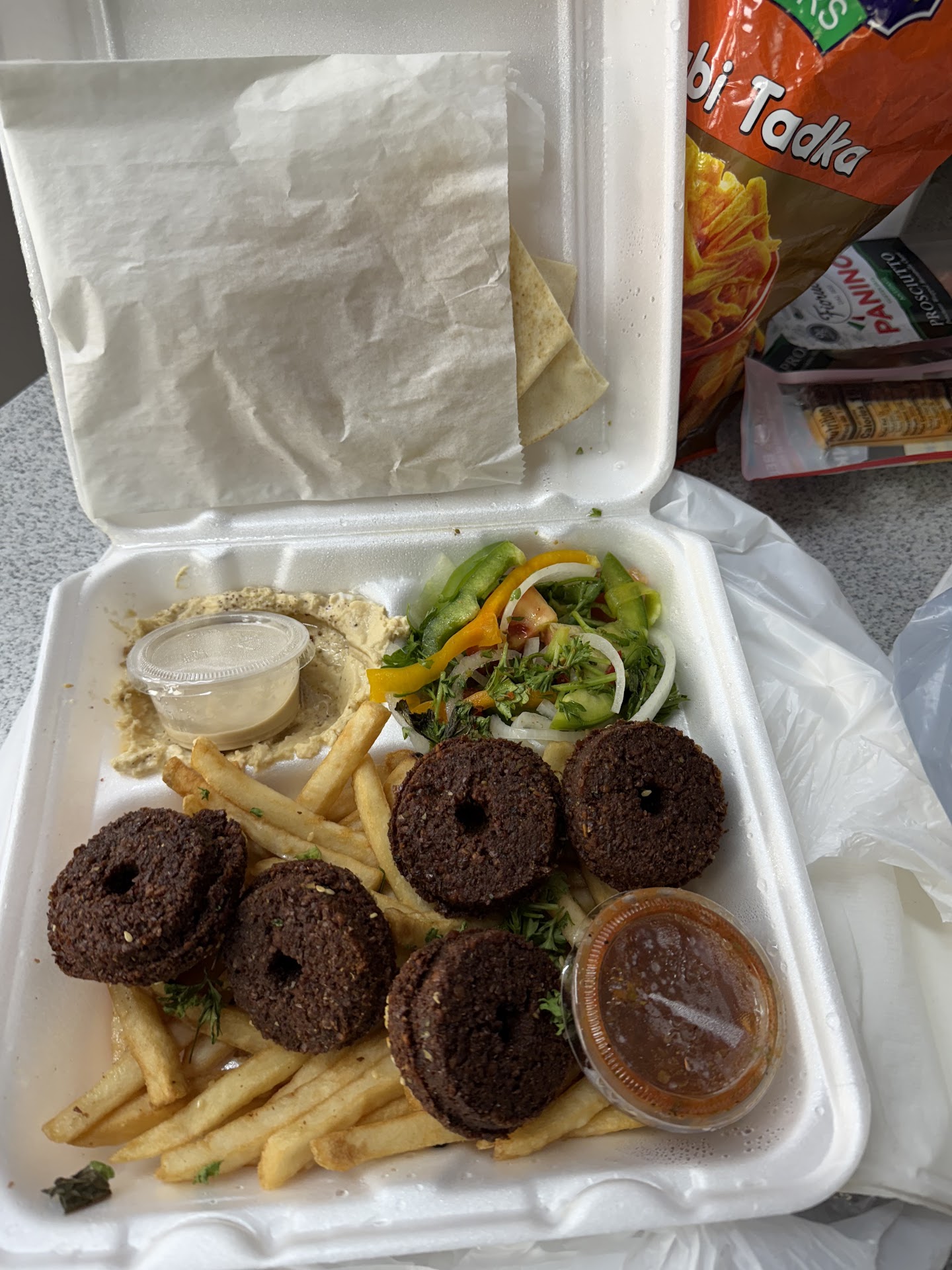 OMG. Really, really delicious. Husband ordered ahead and we got it to go. No place to eat inside evidently. But the food is some of the best Mediterranean we have had. Falafel was so tasty and moist. Chicken had a delicious marinade. Like someone else said, RUN don’t walk. And yes, prices super reasonable and portion...