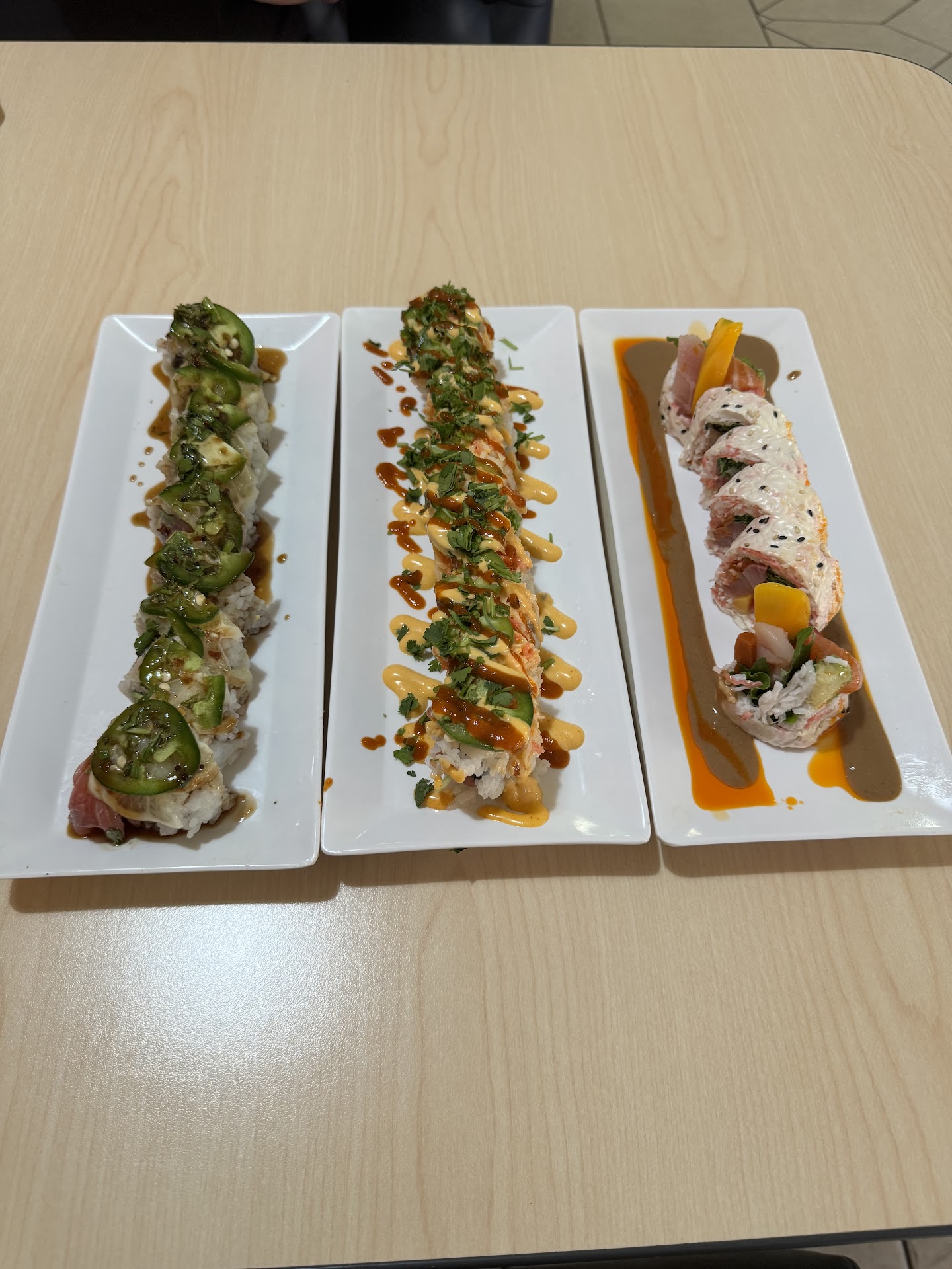 After looking at the menu, we decided to try out the Refreshing roll, Mexican roll, Sexy roll & Salmon Collar. We were quickly impressed when our rolls came out. They looked amazing. We noticed they had light rice & plenty of protein. We were in love after having our first bite. With every bite, we loved it even more. After eating half of our sushi we decided to ask for a container to go because we were still waiting for the salmon collar. The salmon collar took long but it was well worth it. It was so delicious & full of flavor.