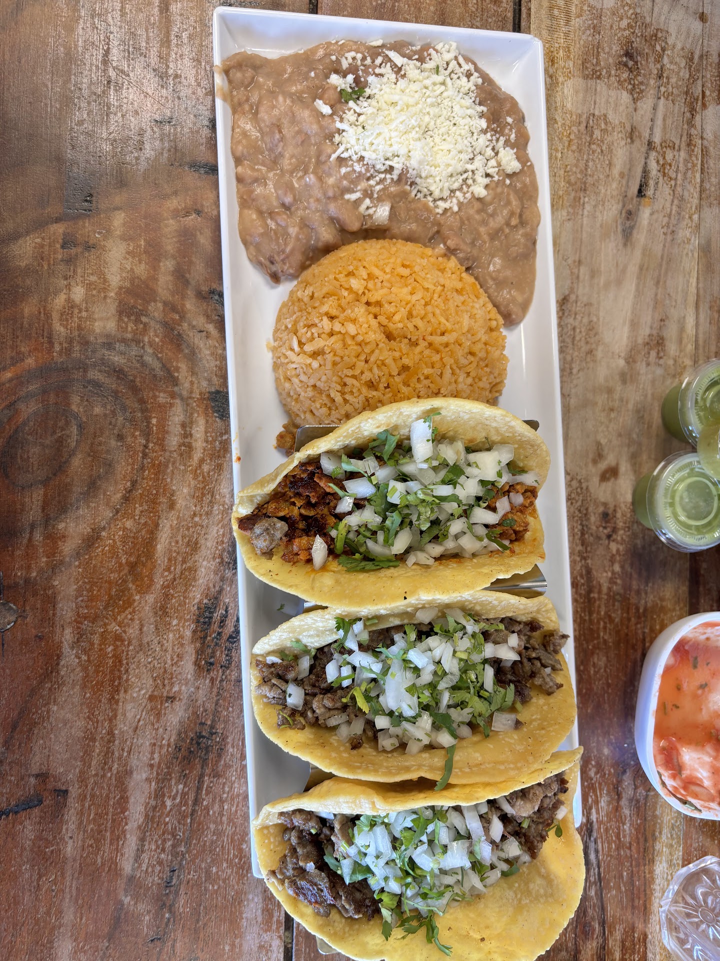 Fifth: prices. With a wait time of 50+ minutes, rude service, a QR code menu, sweltering heat, and this being lunch for only 3, maybe it shouldn't cost over $75 for mediocre food. Though the chicken was very tender, the enchiladas were a bit too salty, as was the server.