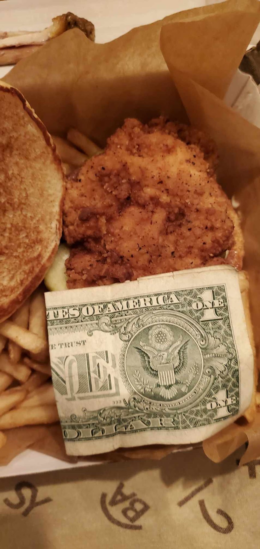 Following up, it's been a few weeks after I posted this and responded to the comment left by management to go their website, which I did and fill out their form online, which I also did, even left them all my contact info and nothing, no response, no phone call no email back to me, I guess it's all about looking good to the public eye, but in reality, looks like they really don't care. BUT, I understand, it's hard to respond to the picture of their tiny $12 chicken sandwich that's about the same size of a $1 bill folded in half (as seen in the picture), when I could have spent $2 or $3 more any other place and gotten one twice that size, fresh and not dry with all sorts of condiments. Sad really.. as I mentioned before, the garlic chicken wings were...