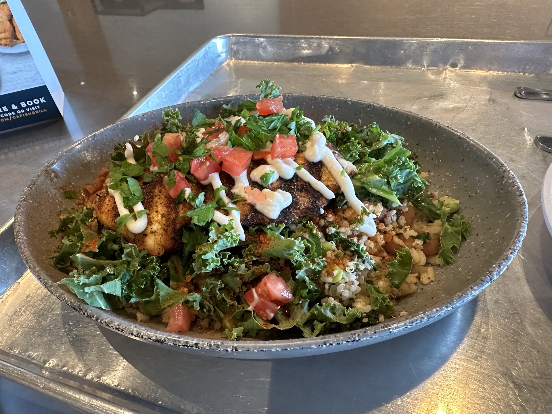 My review: we ordered the fish and calamari w side of Kaleslaw - (star of the meal) , fish and shrimp w roasted corn and a side of Asparagus. The calamari was very dry and felt like I was chewing forever, its little mini calamari sticksš«. The fish was ok as in edible but nothing spectacular, the shrimp was hard T chew and the corn definitely did not need cilantro in it. The best part of the order was the Kaleslaw as in I would stop by just to get a side of it by itself. Our orders came with your average fries. The Asparagus was extremely disgusting, itās in a line vinaigarette sauce that overpowers it like they marinated it in the sauce for days and then just served it, we got a refund on the Asparagus & Iāll point out the customer service was excellent, maybe theyāre happy to have customers? I will not be trying...