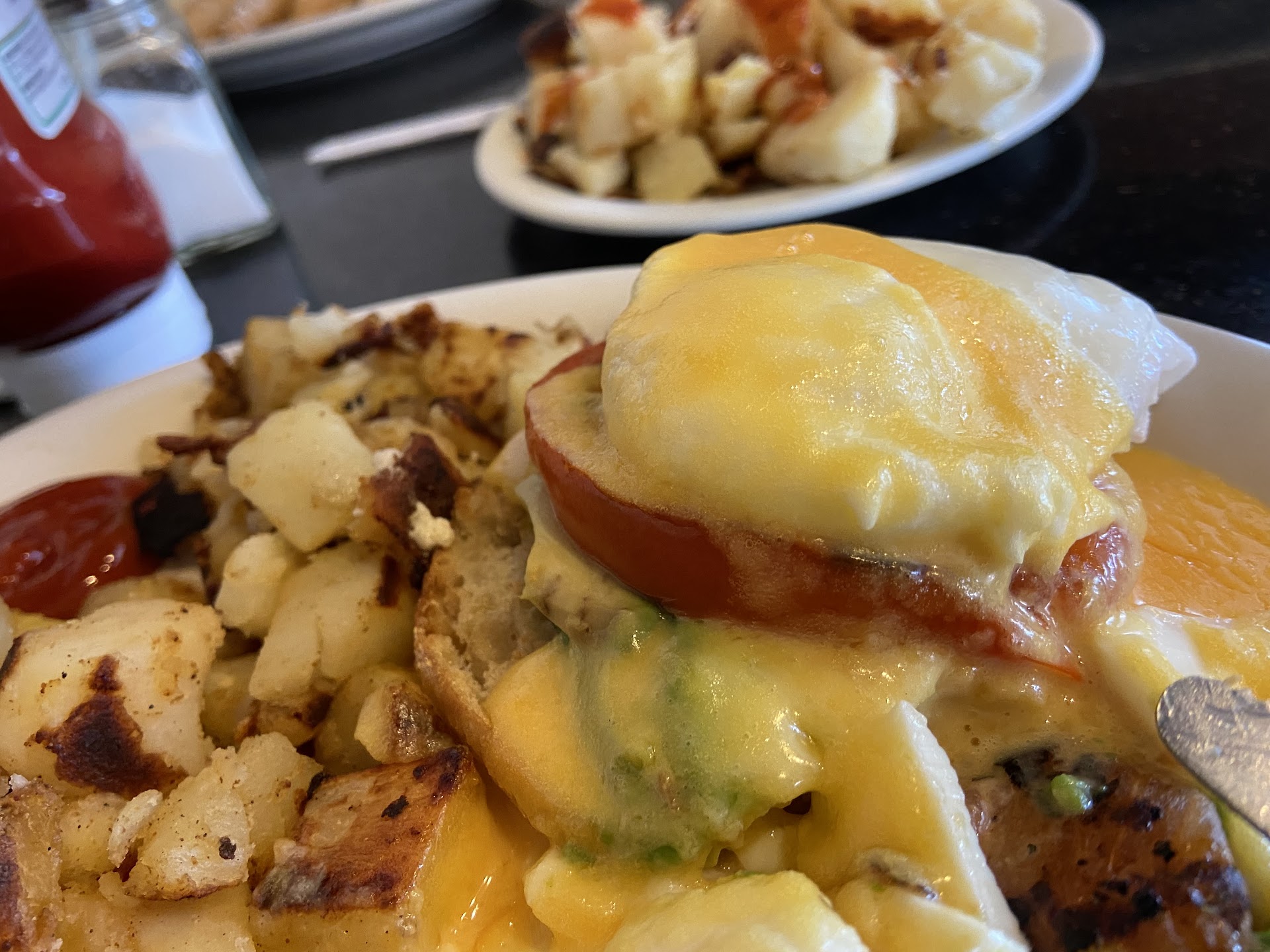 Gave it a try after 2 years. Heard people suggest it lately by invitation. So what was good? The bacon. A side is $7.35 because my order had no meat,to my surprise. My daughter's and I ordered eggs Benedict traditional, sausage, and i went for the so-called California, browned oxidized avocado, on reg English muffin and a poorly executed over cooked poached eggs on all 3 orders. Sauce, nothing to cheer for.
