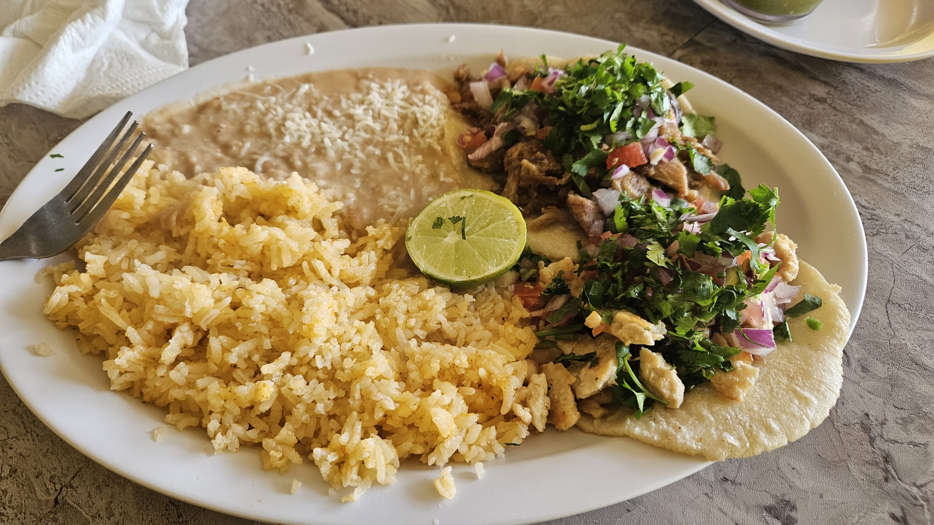 These were the best tacos, rice and beans I have ever had. Everything was so tasty but very light at the same time. It wasn't overly seasoned but was delicious and flavorful.