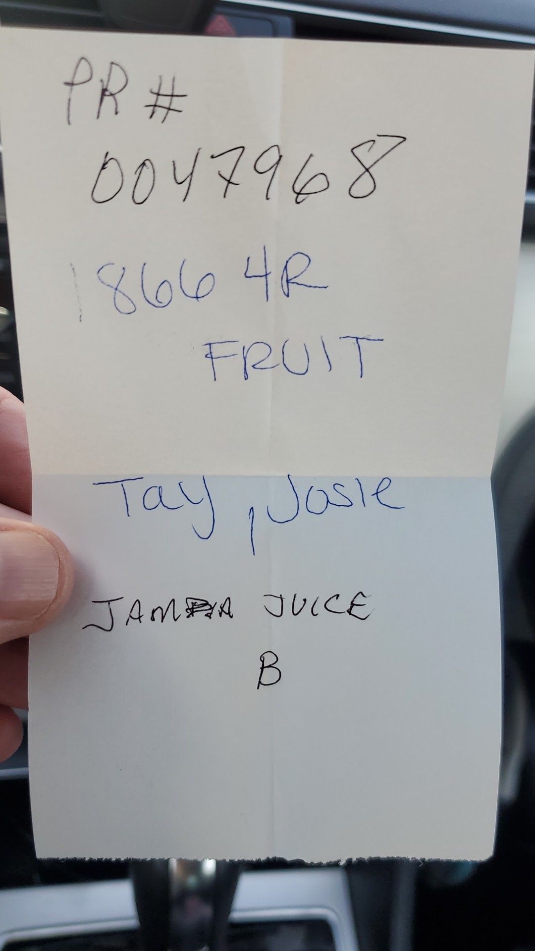 Read moreRefused me service because I didn't have a mask on, I was told I would not be served without a mask even though I showed an ADA letter stating that I couldn't wear one for health reasons. I spoke to a young lady name Josie And she gave me her manager's name Tay Store location 1866 4R, Address,38107-B, 47th St E Space G2, Palmdale, CA 93552. I made her aware that she was denying me service against Americans disability act And that I'd be reporting them in Jamba Juice corporation To the Justice department. I didn't pursue I walked out since I had my girlfriend with me, but this is unacceptable these kids are not trained in aware of the laws for Americans with...