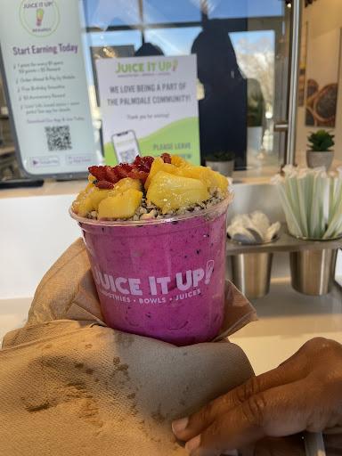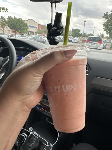 Read moreAlright alright 😊 y'all know I love being able to write a great review, so here we go 😂😂 now im not a smoothie type dude at all no coffee ☕️ tea 🫖 bagel 🥯 ill piss a Starbucks off if they seen me coming 🤣 but wifey been pushing me to go to JUICE IT UP for a minute. Now the 1st time we went in ELI took care of us, I just got the same drink as wifey did [STRAWBERRY🍓WAVE] Which was real nice, but for me personally I could live without it 🤷 2nd time wifey slid us in there Ms Cindy took care of us. Now, I actually L👀KED at the board saw a strawberry lemonade drink & thought we'll I can't go wrong with this. Wifey got her same OL 🙄 strawberry wave, & I tasted minds and it just didn't have a kick to it, no real flavor more of a summer light drink I just knew Cindy didn't blend my drink write 🤣 UNNTILLL⏱️ Wifey takes us back the 3rd time LORD 🙄.. This time Cindy & Eli is both working, & let me say this (REAL QUICK) Im very observant for my readers 🧐 Every time I walked in it smelled so fresh & yummy, these two are very clean & fast their work ethic is phenomenal & they're very valuable to the company, they know exactly what they're doing 🫡 So I said to Cindy umm that strawberry drink I got last time was kind of light on the fruits 😅 & Cindy Broke the drink down to me like a professor 🕵♀️ I knew the fruit levels freeze temp & where the drink was founded by the time she was done. 🤣 Then it happened yall, my boy Eli made me the Raspberry drink 😝 Look I don't know the exact name but its like the 3rd fruit drink on the board y'all 🙏🏼 MY GAWD 🙏🏼 all ima say is by time me & wifey got back to the car I was walking back in for another Large my boyz took my first one over 🤣 & I can now say with my chest 👊👍 im a smoothie dude 😅 & THIS I CAN NOT LIVE WITHOUT 🫡 listen when i say this, Your drink is there it may take a few tries but I can promise, you will find your life line in there 😂 & as ALWAYS...