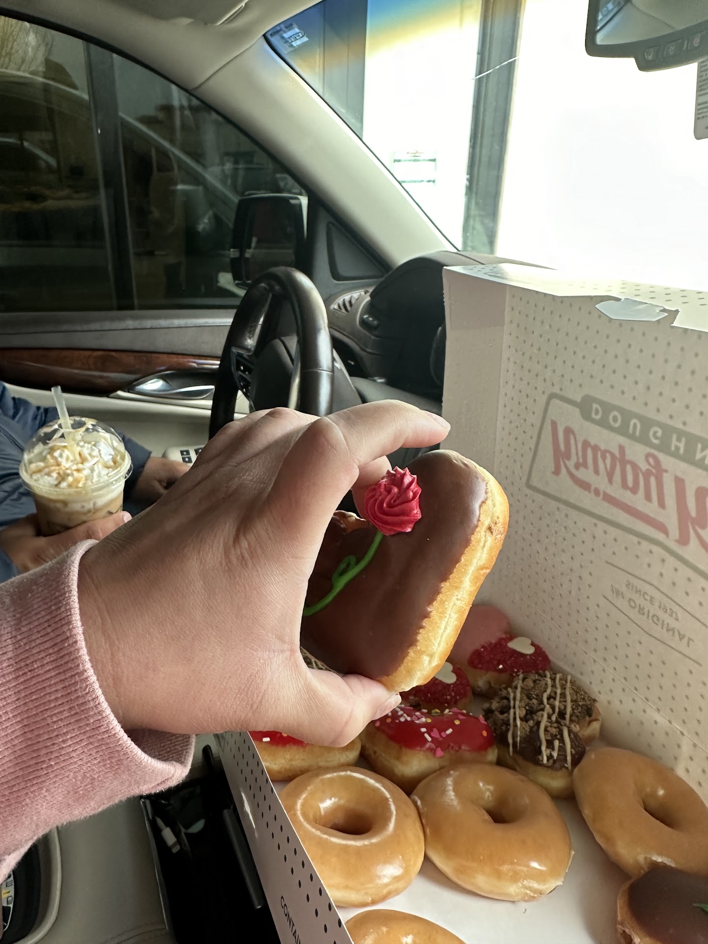 I was just here in Krispy Kreme doughnuts this morning . And I order the valentine doughnuts and iced caramel specialty latte I was told on the speaker they didn’t carry the valentine box and I was ok with it . When I pull to the window Karla was super rude and had a very negative attitude for a 9:30 am and being the only car in the drive thru . Also when she handed me my coffee was not the same as the picture I asked if she can please put the whip cream and caramel drizzle . She said it was and up charge I said I order the New specialty drink for a reason and she kept giving attitude because the second time she handed me the coffee it was missing the caramel and once again i asked I want it the same way as the picture . My point here is that if u can’t give great customer service don’t get this kind of job . It’s very crucial to give bad customer service . When I asked to speak to a managers you d lady came didn’t got her name but they have no manners and then she said that Karla just had a bad morning and I said Karla has just ruined our morning and I will sit here for 5 min and wait for me to talk to manager so another general manager she claimed to be by the name of Kristina was worst then Karla and said that everything was given to us what’s the issue and I try to point out the reason why and she said well u can sit here all day long if u want I don’t care . I try explaining to her that her attitude was the same as Karla and she said to go get a life and she slammed her window very hard . Wow I’m impressed how this business has very rude employee's and GM . I think HR should do a big Review on there goals as a team . Because I’m spending my money I’m going to expect great customer service non of the employees apologize for the attitude . I will not be coming back . I never experience this attitude in Palmdale at all . Been out here so many years and never had...