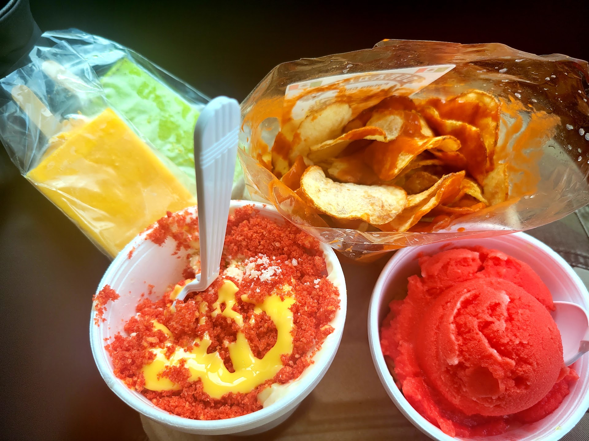 Tonight’s service was not good ! I don’t know if it was because of the language barrier or if the woman working in the light pink shirt tonight was just prejudiced, I had a medium size order , she acted rude like I was bothering her ! She scooped my first two ice creams , then when I told her I had three more cups to go she stared off and stopped responding to me , so I asked her if everything was okay and she rudely said I’m waiting for you to say your flavors , so I tell her my flavors and then my boyfriend ordered a mangonada he asked for three scoops at first but wanted to add a fourth scoop and she told him NO , and rudely started naming the three flavors that were already in his cup saying that’s all you can get , okay so we just let that slide and now on the last cup we wanted a mixed drink of strawberry and limonade, the woman made two cups and when My boyfriend explained in Spanish she looked at me and said , no you asked for two different drinks one strawberry and one limonade , when I told her no I asked for half n half she rolled her eyes at me , I asked her if she was having a bad day ?it made me feel embarrassed as others in line were looking and could tell she was having an attitude! She overcharged me as well I love this place but she shouldn’t be working with the public . It was very...