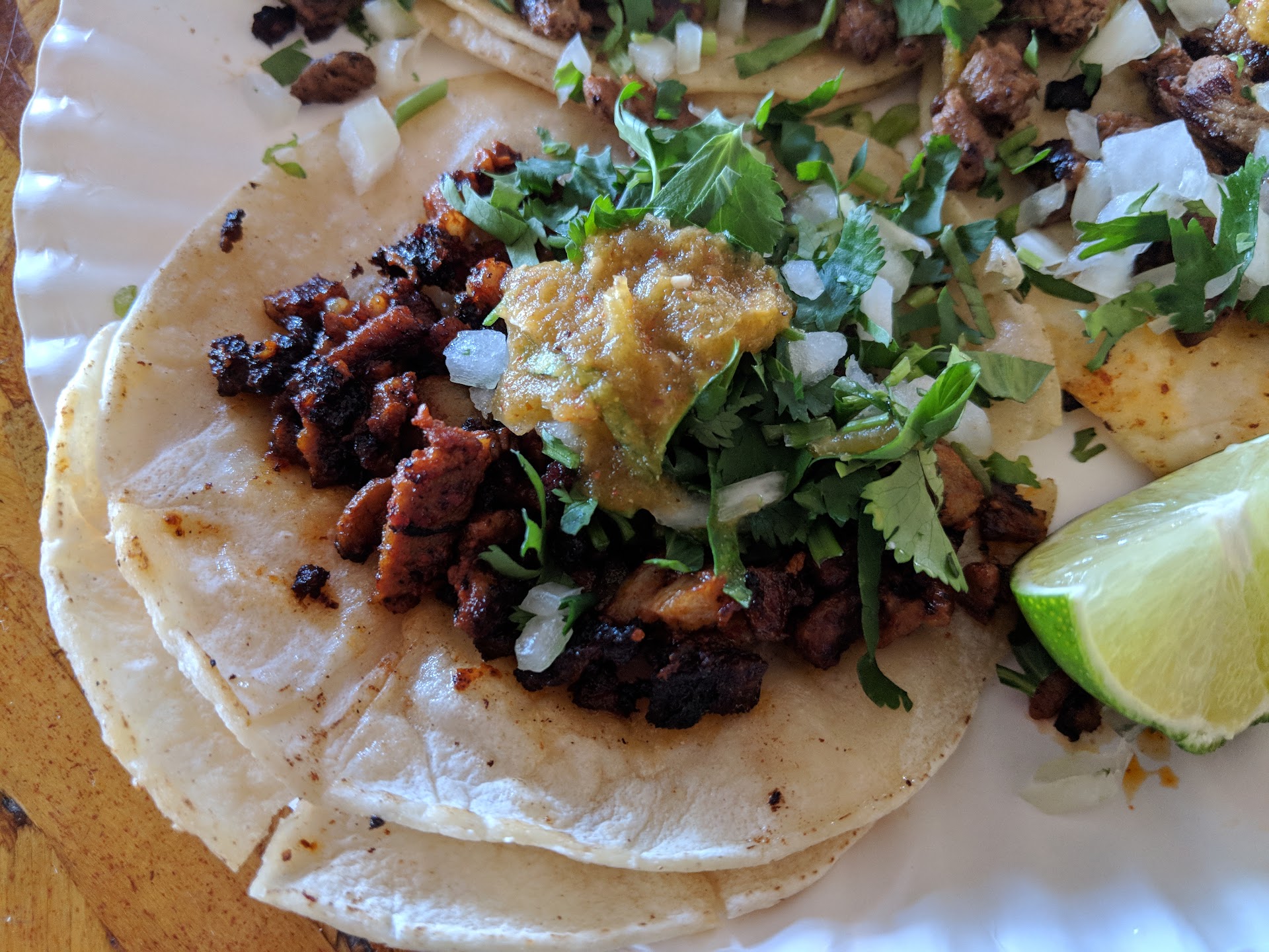 I highly recommend any new customer to order tacos al pastor. They are absolutely delicious!!!!! We came in as first time customers and we were nicely greeted by the woman at the register. She gave us a little bit of the history of the location and let us know that there is another location near Doublz/Ihop that we can also visit. She also told us that they are looking into buying a location in West Palmdale (which would be a lot closer to me.) Aside from all that, guys make sure to have cash in hand, as this is a cash only establishment. And most importantly there is plenty of parking. I ordered the huevo con chorizo bestiary player with coffee and flour tortillas. My bf ordered a carne asada burrito and some coffee. As we waited (probably about 20 minutes ) we struck up a conversation with the lady at the register, and aside from the info I stated on top, she gave us two free tacos al pastor. Since it was obvious it way out first time being there. And I'm glad that she did because aside from the great friendlyservice, I will most definitely be coming back for those tacos. Verdict on breakfast...