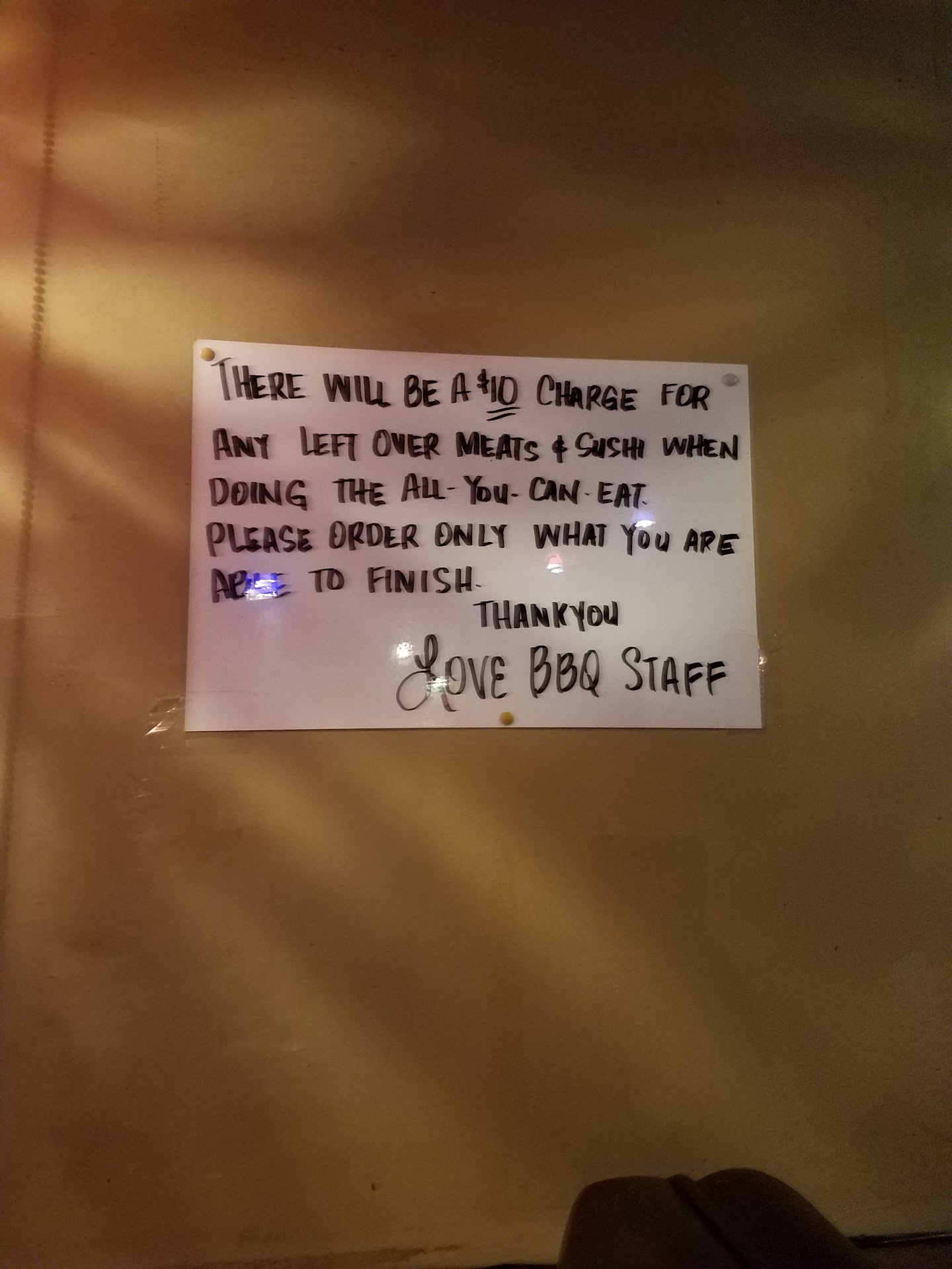 Read moreWent here for dinner went straight to salad bar and ate the miso soup and their fried food after my 3rd fried wonton I got food poisoning, before the meat came so I didnât cook it or ate it and I tried to get a refund or told them to charged just for the salad bar(my date had to tell them since I was throwing up and laying on the booth before the meat came and the lady seen we still had all our food not touched and I paid 20 cash and the rest on my card and it hey didnât refund anything since I already paid they ahead of time they said they couldnât refund it but if I complained before I paid they wouldnât have charged me but since I paid I canât get a refund makes no sense! That they would not charge me for the food if I paid after I ate or if I havenât paid yet since this restaurant charges after like every other place you eat and then pay but I decided to pay first for the all you can eat. Makes no sense just because I paid first they canât refund me... waiter seen the uncooked food untouched. I understand they have a policy so you cook your own food and itâs on you but I didnât eat anything raw!! Didnât cook my own food . but I didnât eat Korean bbq only the salad bar and miso and only 2-3 of fried wontons and a soup i didnât finish since I got sick and i was sweating and laid in the booth and then had to throw up in the bathroom for 30 min I couldnât even leave or talk since I was so sick. Almost called ambulance it was bad food poisoning and barely made it to walk to the car after 30 min of throwing up because I couldnât leave the...
