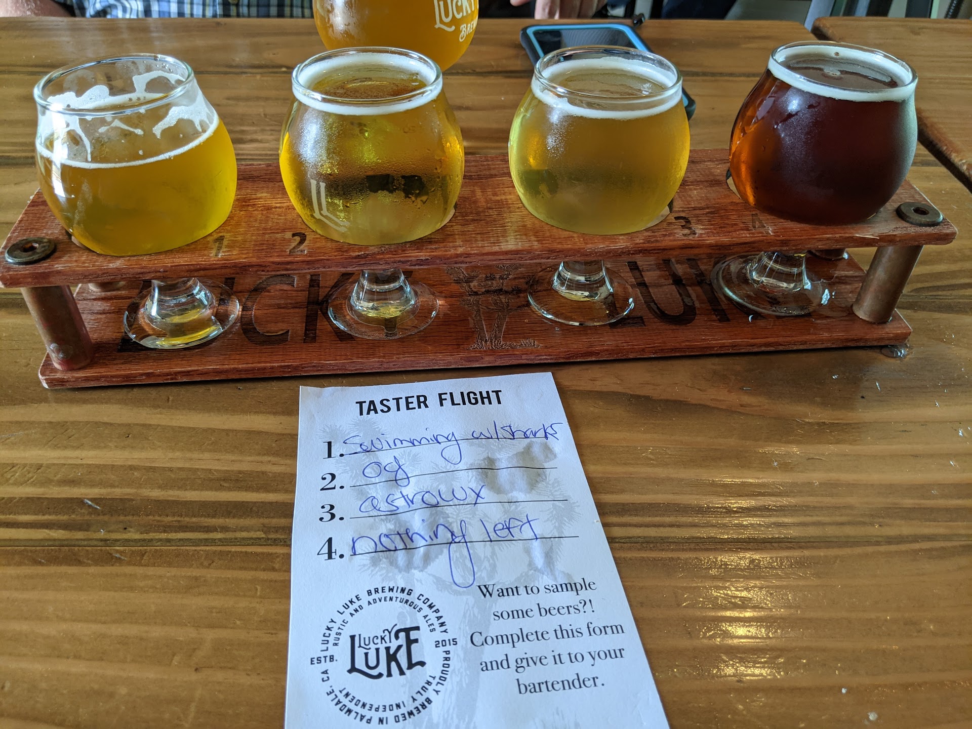 Great to be able to sit and have a drink again. Great brew friendly staff ,food on site. Heated patio. Awesome selection of fine craft beers. I like American blonde IPAs personally.,but they also have really good Amber's. Wheat ales . Growlers,cans and and merchandise to go. Come visit them on their palmdale location or Lancaster. You won't be disappointed š, this has become a great place to come visit on the weekends, family friendly. Or good place to meet your coworkers after a long day of mind grinding work. What ever the occasion is, come visit have a few ,you will not be disappointed. All in all Lucky Luke is a awesome watering hole, close to home if you live in the Palmdale,...